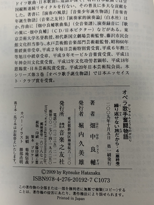 | オペラ歌手奮闘物語 繰り返せない旅だから 四 最終巻 音楽之友社 畑中 良輔 | ||||