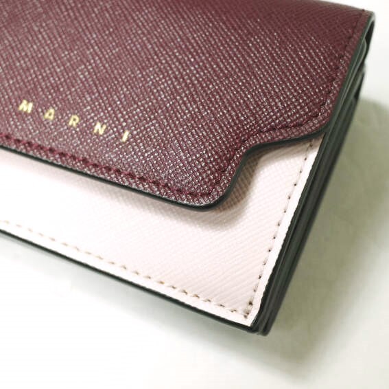 新品 MARNI マルニ TRIFOLD WALLET サフィアーノレザー 三つ折り財布 PFMOW02U23 DEEP RED/LIGHT PINK/SMOKE GREY ミニウォレット g19755