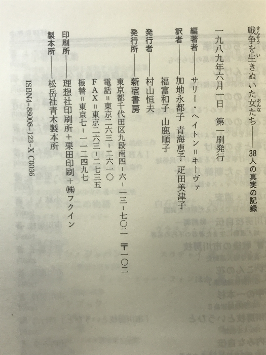 | 戦争を生きぬいた女たち: 38人の真実の記録 新宿書房 サリー ヘイトン・キーヴァ 加地永都子 他訳 | ||||