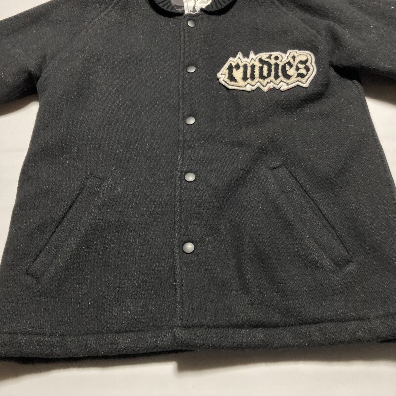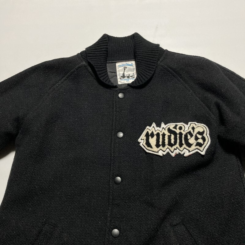 rudies★ルード&パンク★胸ロゴ&バック刺繍ワッペン スタジャン アワードジャケット ラメ光沢 裏キルティング 黒 S RIDIES ルーディーズ