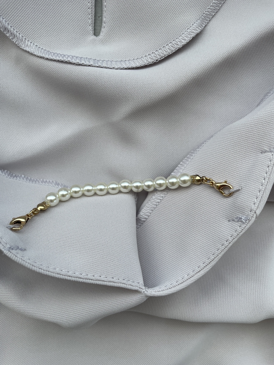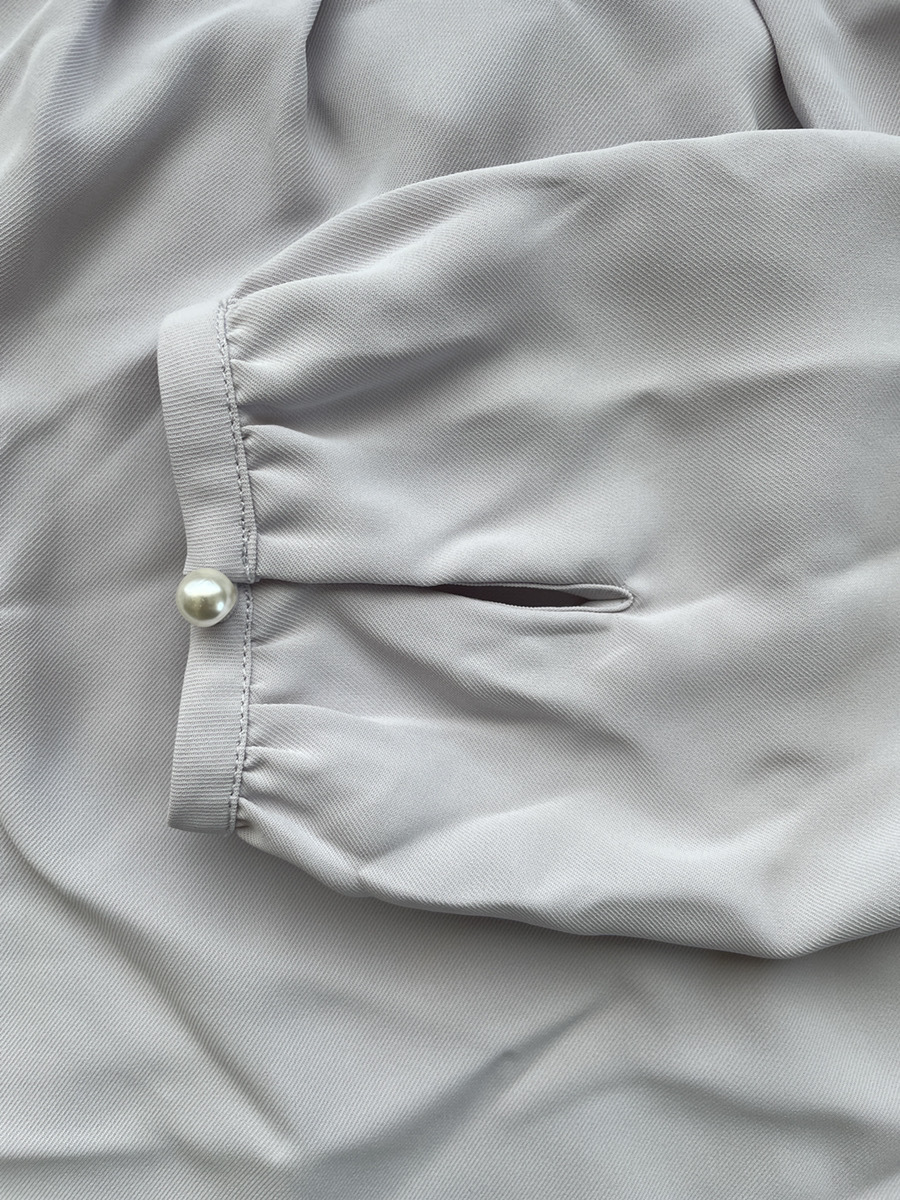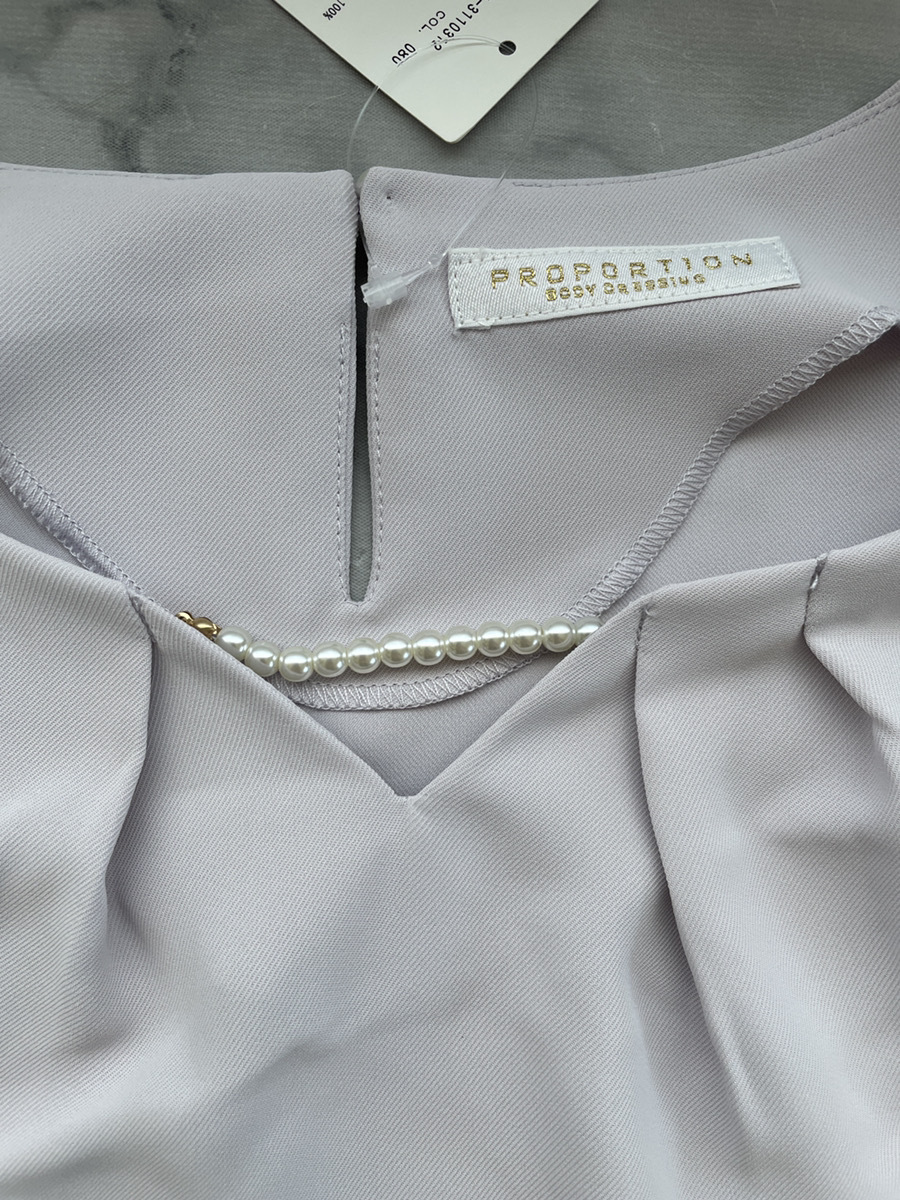 プロポーションで人気のブラウスが今年らしいスプリングカラーで登場。衿ぐりと袖口カフスにパールをつけて華やかなポイントをプラス。衿元のVラインにはパールパーツをアシンメトリーにつけて、甘すぎないように仕上げています。透けにくい素材を使用、通勤にも休日のキレイ目コーデにも使いやすい一枚です。【スタイリング】フレアやマーメイドスカートと合わせると、上品な通勤オフィススタイルが完成します。