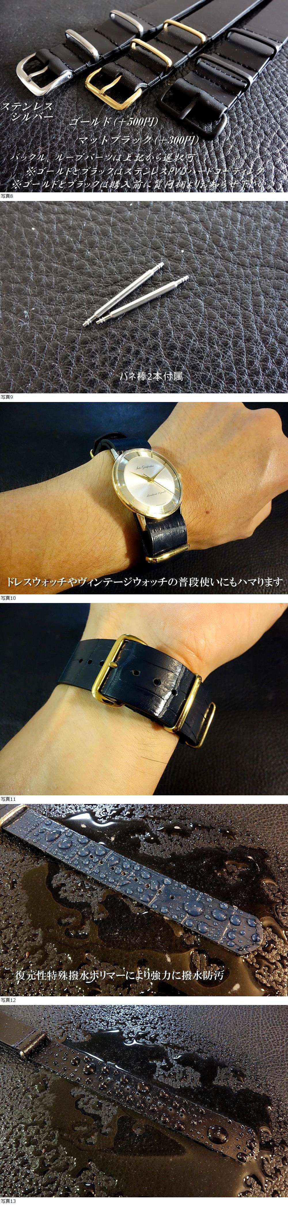 | ◆Leather NATO G10Strap◆高品質国産本革クロコ型押しカーフ NAVY Custom Order(ラグ幅/BUCKLE COLOR) 日本製 受注生産(納期10日前後) |