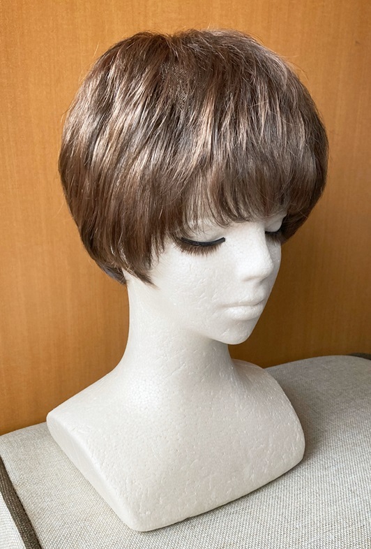 ■キャップ:ストレッチ素材(非常に伸縮性があり楽なつけ心地) ■つむじ:なし■毛質:人毛+化織毛(ネープ部人毛ミックス)