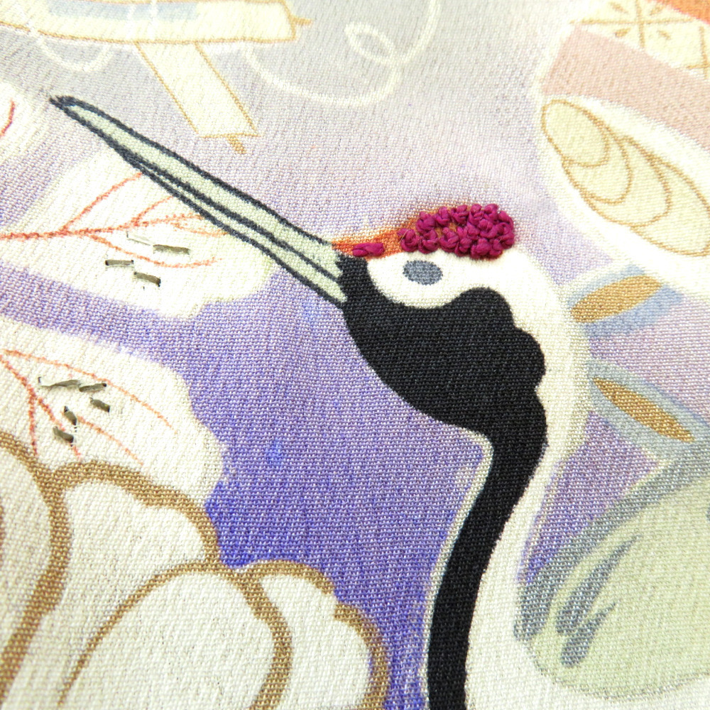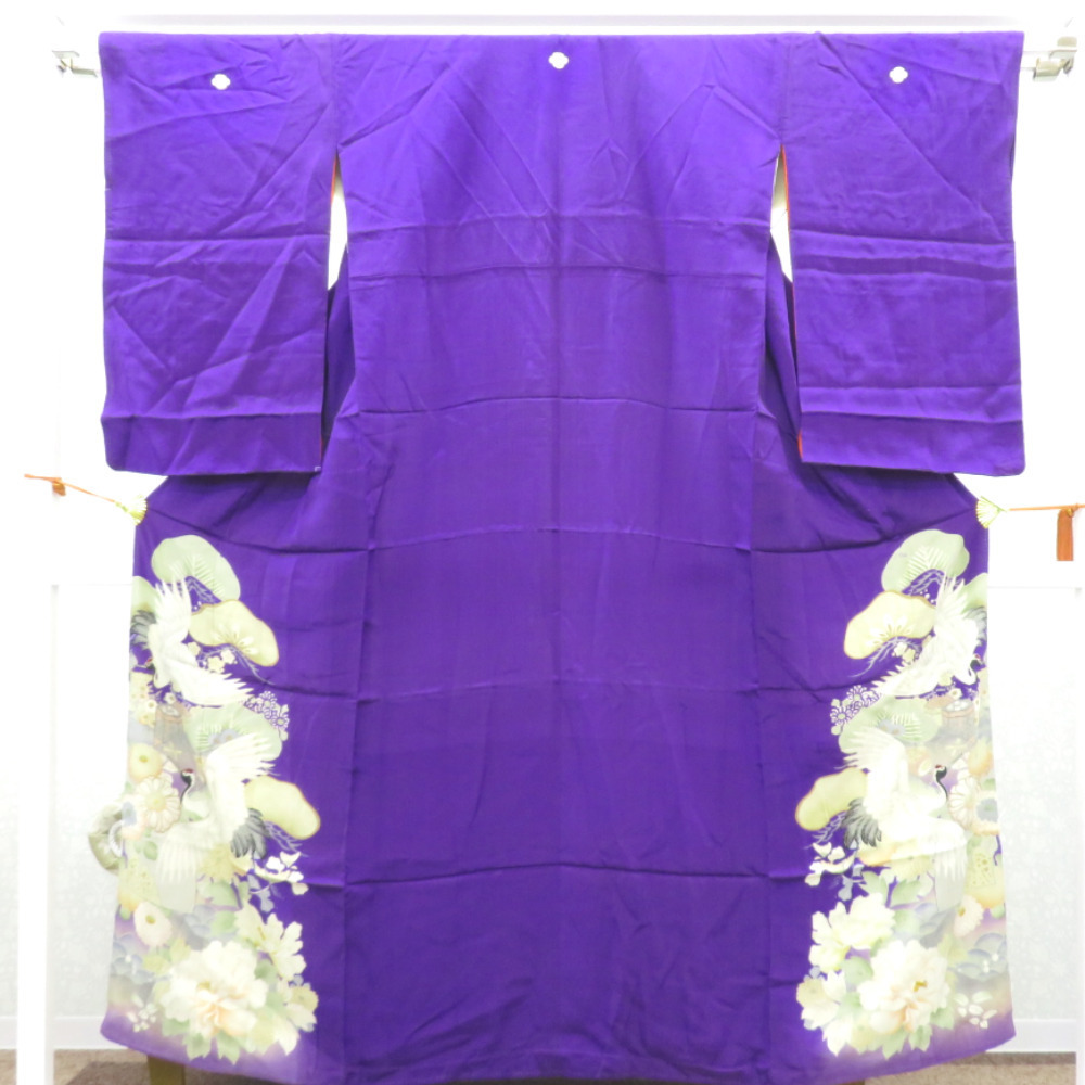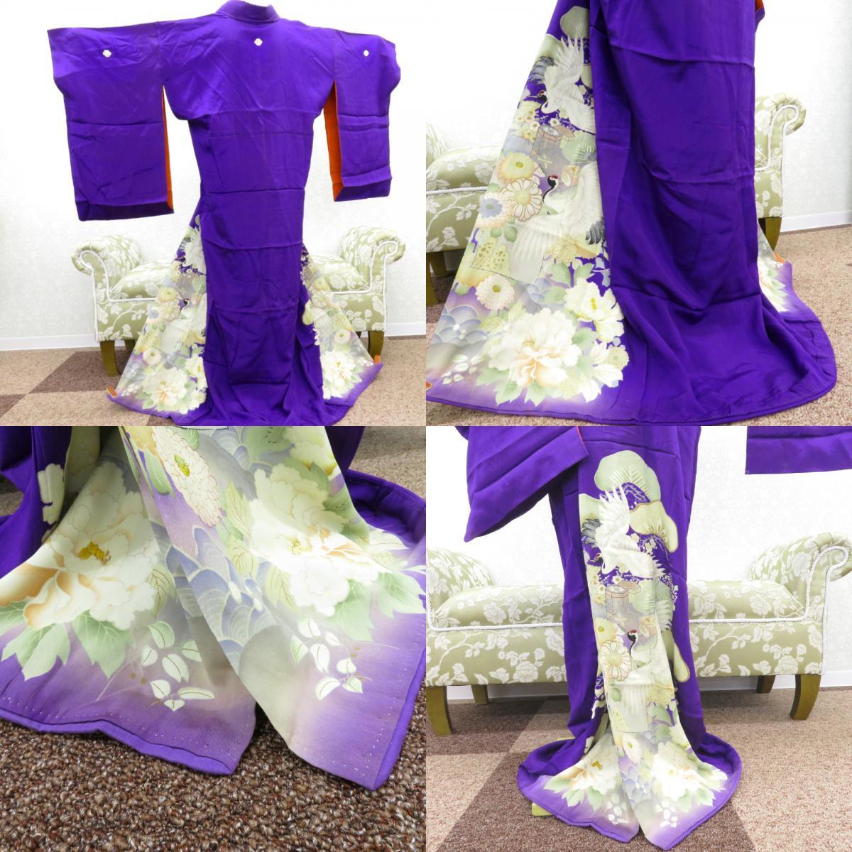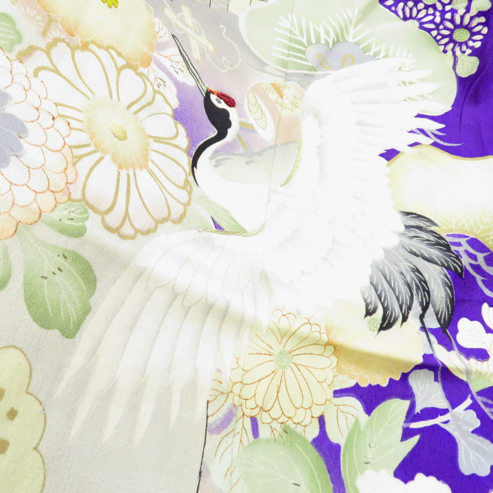 | 色留袖 両褄 昔 アンティーク 昔着物 紫 白 多色 貝桶 鶴 宝模様 花々 広衿 正絹 昔きもの レトロ 明治・大正ロマン 身丈151.5cm |
