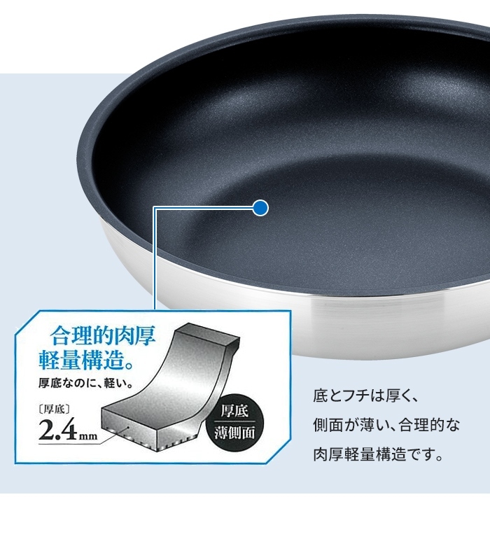 | [内面]ふっ素樹脂塗膜加工(ダイヤモンド粒子配合) [外面]サテン磨き |