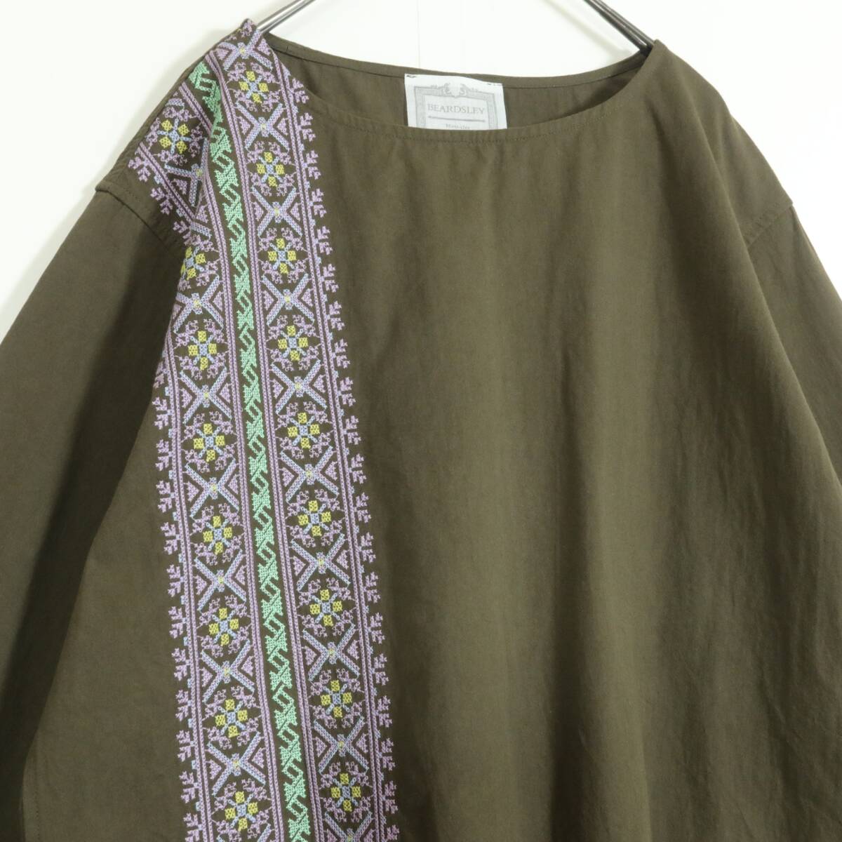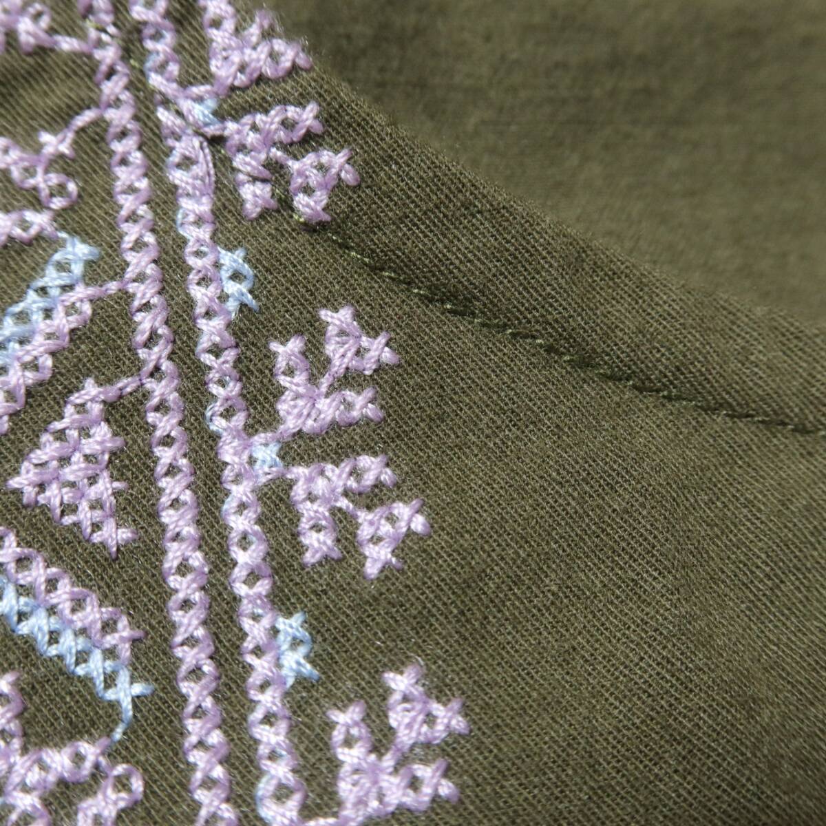 | 商品説明 | 【実寸約】肩幅48袖丈46バスト120着丈56(cm)【サイズ表記】 F【素材】 綿100%【状態】使用感少々で傷や汚れが少々あるお品物お洋服後ろに極少々薄シミ感がございますが、まだまだ大活躍の素敵な一着です。【デザイン】カーキグリーン色系トライバル柄風の刺しゅうが素敵なゆったりとしたプルオーバーです。カジュアルかわいい印象の一着です。 |