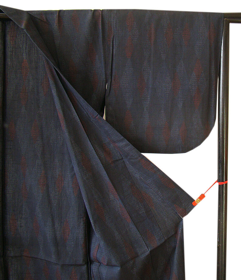 | 商品説明 | こちらのお品は「単衣」ですので5月、6月、9月にお召頂ければと思います。 着物には、大きく分けて「袷(あわせ)の着物」と「単衣(ひとえ)の着物」と「夏着物」があります。 反物(表地)を着物に仕立てるときに、裏地類をつけるものを袷の着物、 つけないものを単衣の着物と呼び、胴裏や八掛といった裏地がつかない一枚ものの着物です。 また裏地がないため、座る時などにヒップのラインが目立たないよう、 居敷当て(いしきあて)の生地をつけることもあります。 居敷当ては付いておりません。 とてもしなやかなさらりとした手触りの味わい深く着心地良い単衣仕立ての紬地、 渋い藍鉄色地に赤、藍鼠色の菱の織柄が粋な着物姿を演出しております。 また、バチ衿仕立てとなっております。 |