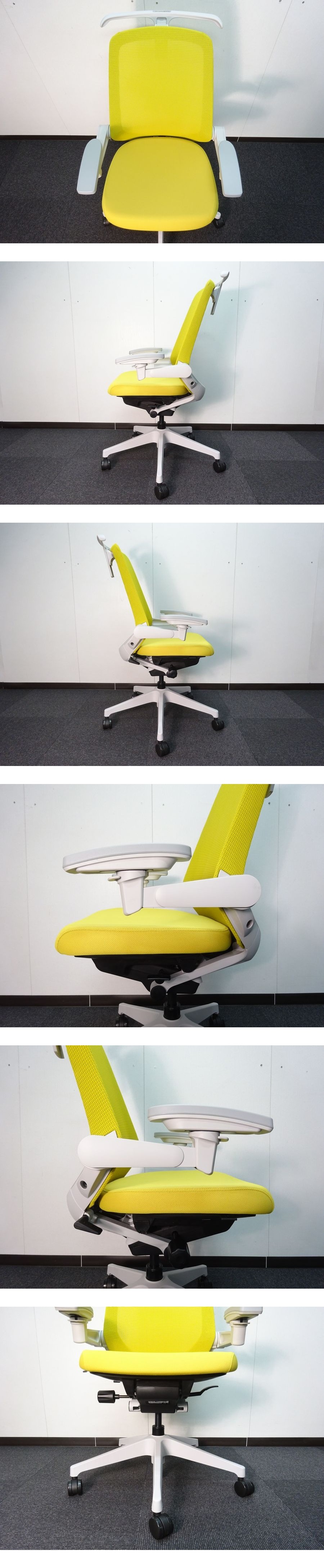 ・メーカー:イトーキ ・型番:KJ-177JVH1GNU5 ・サイズ:W590(脚680)×D550~600×H940~1055×SH435~550 単位(mm) ・本体、肘受け、フレームカラー:ライトグレー ・張地カラー:ストロングイエロー ・脚カラー:ライトグレー ・定価:¥136,840 オフィスファニチャーブランド イトーキのノートチェア ハイバック アジャスタブル肘付です。インテリア性へのこだわりとハイパフォーマンスの両立。オフィス空間のインテリア性が高まるなかで、細部までデザインを追求。 長時間着座にも対応できる優れた機能性とデザインの融合で、上質な心地よさを生み出しました。 カジュアルな空間にも調和するデザインを目指し、樹脂部分の露出を抑え、背のフレームまでファブリックで包み、インテリア性を高めました。また、コンパクトな設計の中にも、基本機能は充実。可動肘は3Dアームとなり、自然な体勢で作業することができます。 ■仕様 ・背:メッシュ張り ・座:布地張り ・背ブラケット:強化ナイロン樹脂 ・肘当て:発砲ウレタン一体成型 ・肘受け:強化ナイロン樹脂 ・脚:強化ナイロン樹脂 ナイロン双輪キャスター付 ■機能 ・アンクルムーブ・シンクロロッキング ・シートアングルストッパー ・ロッキング強弱調節 ・ベンディングシート ・ガス上下調節 ・座の奥行調節 ■状態 ・こちらの商品は2025年製未使用品となります。運搬時の若干のスレはございますが、目立つキズなど無くとても綺麗な状態です。この機会にオフィス、ご自宅にいかがでしょうか! (※未使用とは…商品を開封し、設置等しましたが一度も使用せず保管していた商品となります。) | ||||