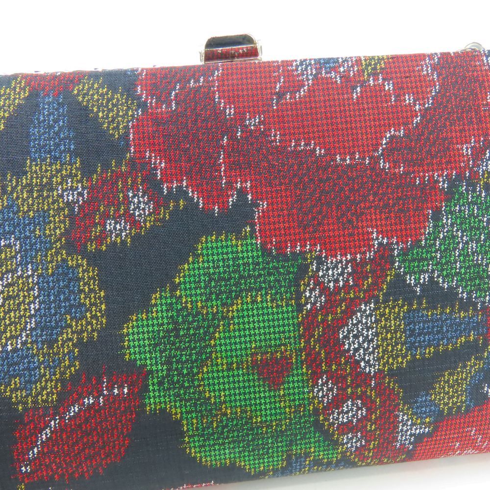 | 品名 | 【中古】 和装バッグ 正絹 黒 マルチカラー シルバー金具 クラッチ 小物 レディース 女性 |