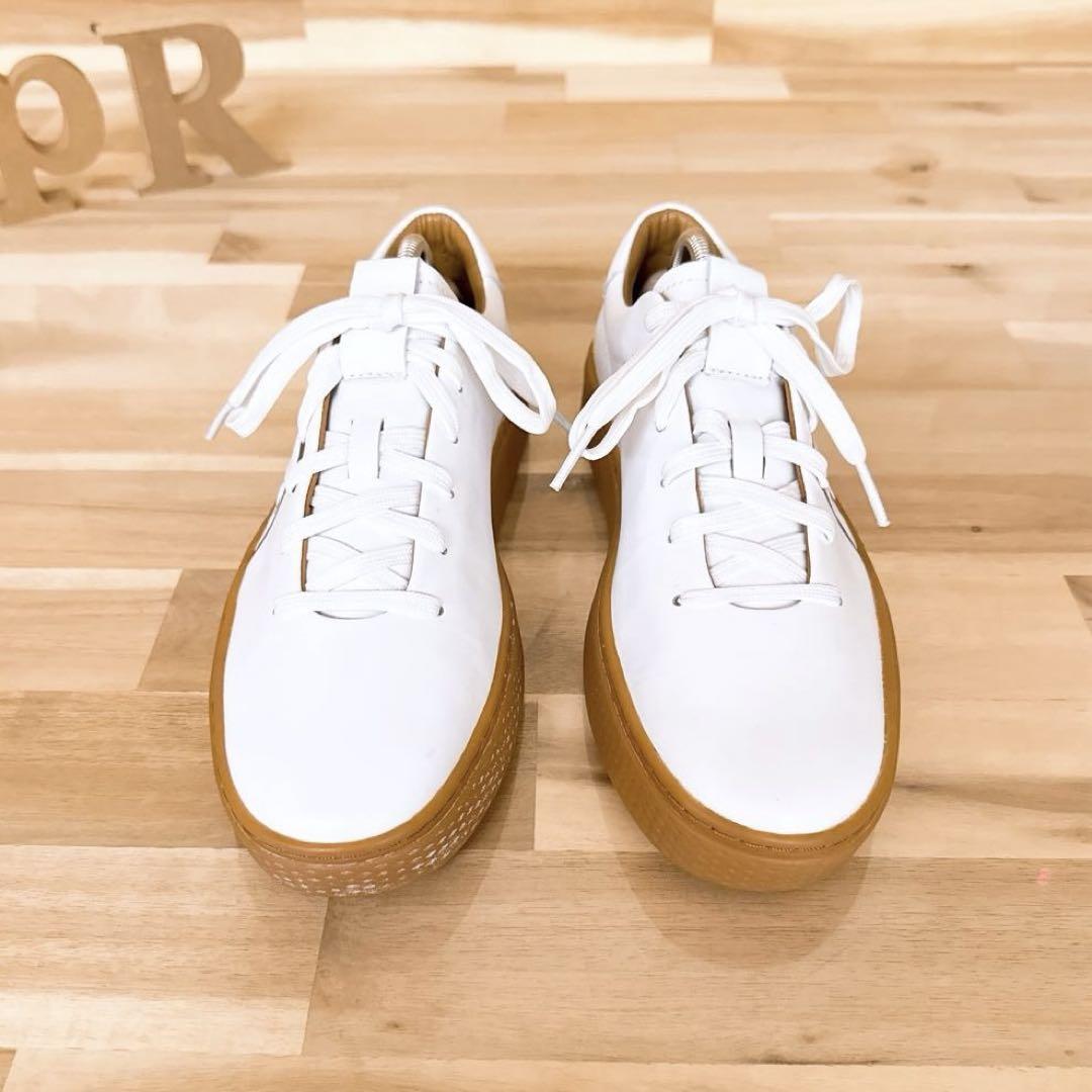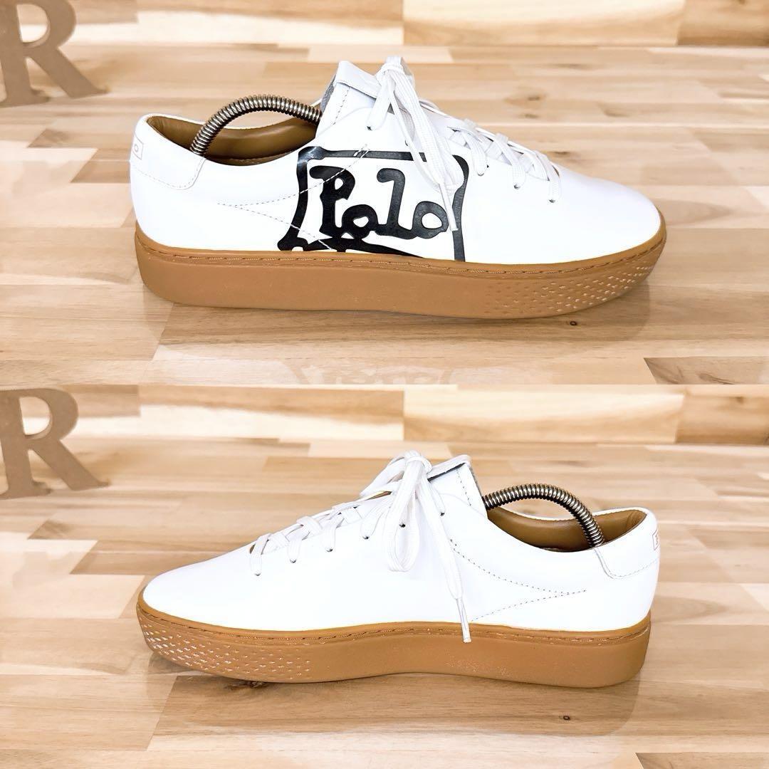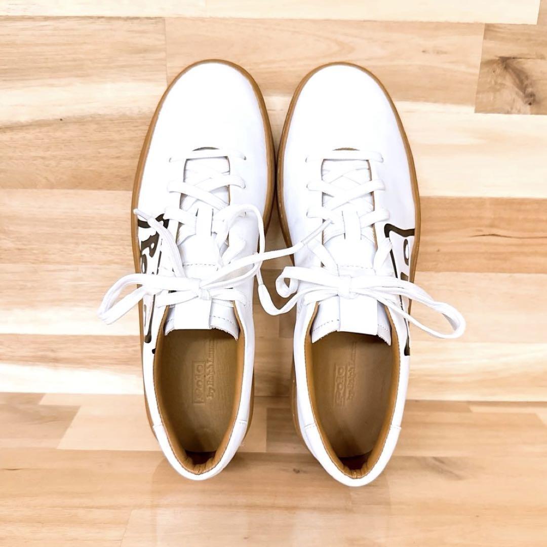 * Court 125 *つるりと滑らかな上質なホワイトレザーが軽やかに映え、キャメル寄りのガムソールがヴィンテージ風のレトロなバランス感を演出。サイドに施されたブラックのグラフィック「POLO」ロゴが視線を惹きつけるアクセント。ほんのり厚みのあるソールで歩きやすく、パンツにもスカートにもすっと馴染み、クラシックと高級感×遊び心を程良くミックスした、とってもオシャレなPOLO RALPH LAURENのスニーカーです。既に完売、生産も終了しており、オークションやフリマでも滅多に見ることのない、たいへん珍しいお品です。※脱臭機にて除菌リフレッシュ済みです。