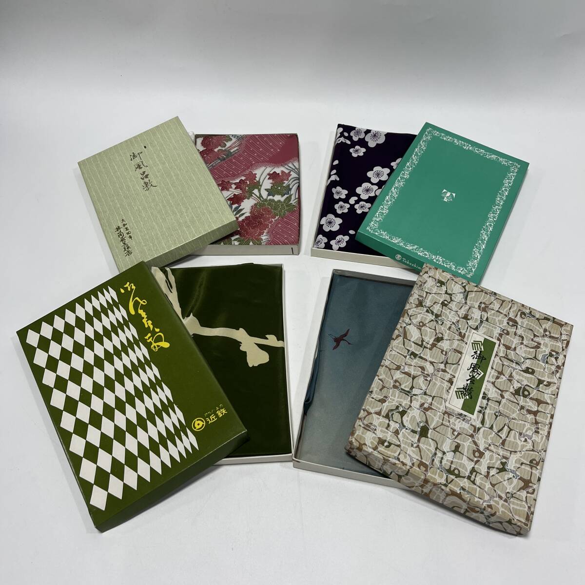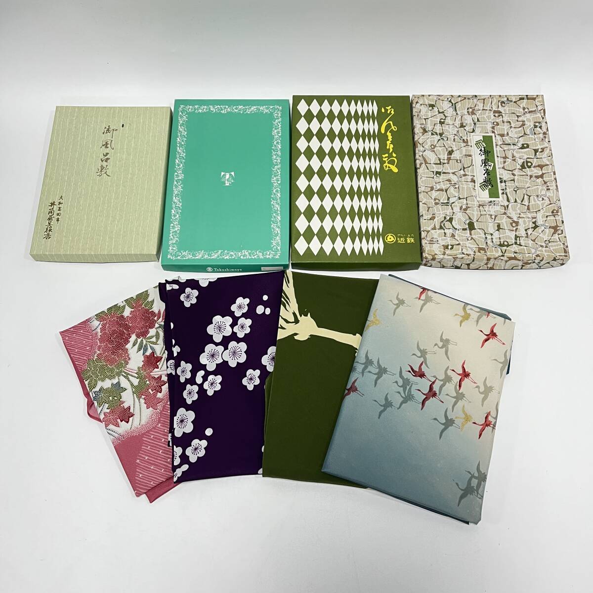 未使用 風呂敷 まとめて4点 百貨店 御風呂式敷 大判 昭和レトロ 花柄 鶴 ピンク 紫 緑 経年保管品の出品です。