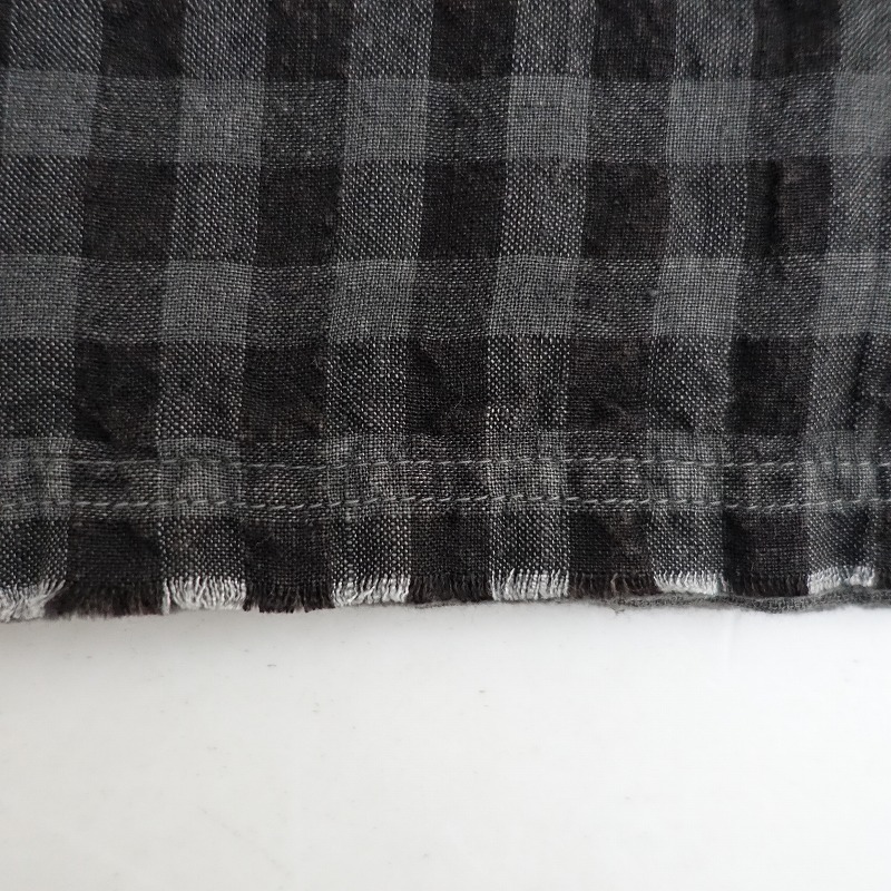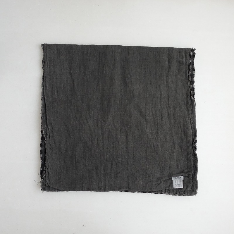 | FACTORYのリバーシブルストール ギンガムチェック/無地です。カラーはグレー×ブラックのギンガムチェック柄で、裏面グレー無地の2枚合わせです。表地は麻100%、裏地は綿50%×麻50%混紡で、周りは裁ち切り仕様です。 |