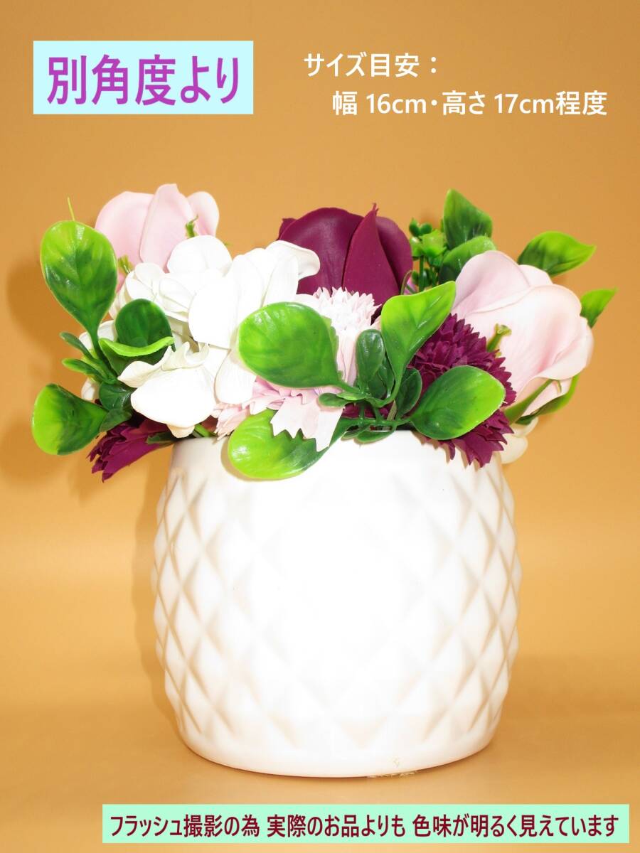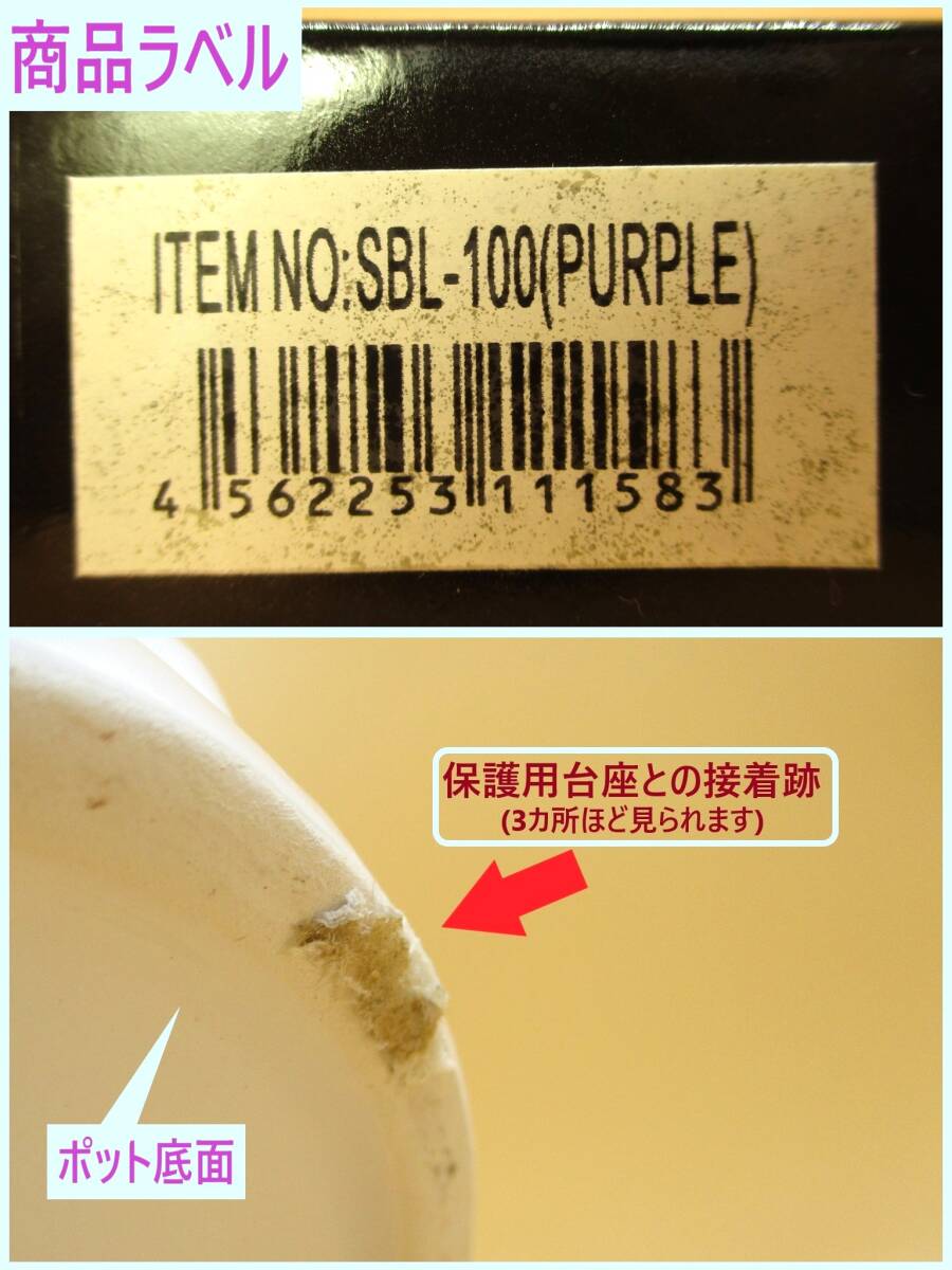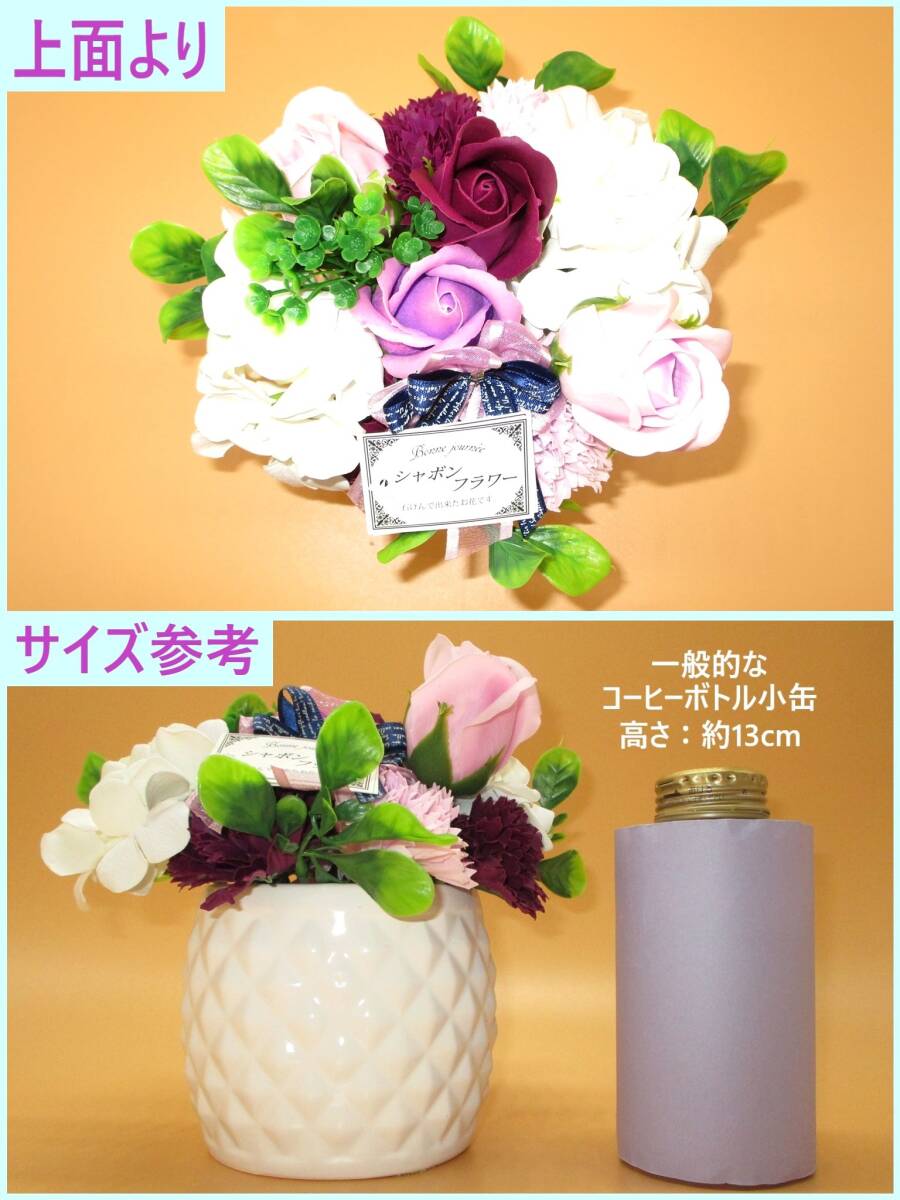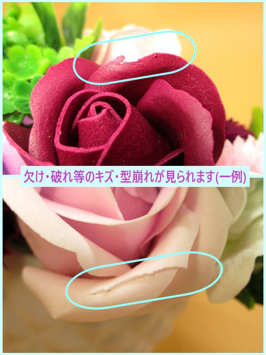 | 「訳あり」扱い品です。 撮影・確認のため、外装クリアケースを開封し、 保護用台座より外しましたが、 未使用品です。 長期保存品につき、ソープの香りが 少なくなっている可能性があります。 また、部分的に、花びらの破れ・欠け等の 型崩れが見られます。 以下の商品説明をよくご覧になってから、 ご検討をお願い致します。 神経質な方、完品をご希望の方は、 御入札をご遠慮ください。 【商品内容】 シャボンフラワー フラワーポット パープル (SBL-100) 外装クリアケースサイズ: 約 16×16×19.5(cm) 本体サイズ: 約 幅16×高さ17(cm) 商品重量: 外装込みで 620g程度 その他: 海外製/メーカー等の詳細は不明 倉庫での長期保存品 *状態等は、画像にてご確認ください *撮影時のフラッシュの都合上 実際の商品の色味よりも 明るく見える場合があります *サイズ対比用に 一般的なコーヒーボトル小缶を置いています 参考にどうぞ(画像:5) 【状態等】 ・撮影・確認の為、外装クリアケースを開封し、 保護用台座より外しましたが、 未使用品です。 ・外装ケースには、スレ・キズ・角の凹みや 潰れなどの傷みが見られます。 またケース内の台座(ポット固定用)には、 部分的な破れがあります。 美品をご希望の方はご遠慮ください。 (参考:画像8・10) ・長期保存品につき、内部への埃の入り込み等、 御容赦下さい。 ・部分的に、花びらの破れ・欠け等の 型崩れが見られます。 (参考:画像2~5・7、他) ・「ポット」部分底部に、商品保護用台座との 固定用接着跡が付着しています。 このままでもご使用には問題ありませんが、 気になさる方はお取り下さい。 (参考:画像9) 【補足】 ・長期保存品につき、ソープの香りが 少なくなっている可能性があります。 ・配送時の振動などで、 全体の形が崩れる可能性があります。 また、花びらの落ち等の崩れが 生じる可能性があります。 以上の点より「訳あり」扱い品として 安価にて出品いたします。 ご承知をいただける方のみ、 ノークレーム・ノーリターンにて ご検討下さい。 | ||