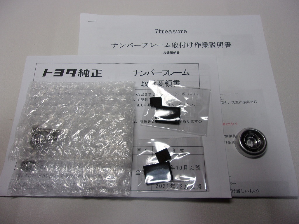■セット内容■ 「ナンバーフレーム」(フロント) 「ナンバーフレーム」(リア) 「取付け用ネジ一式」(フロント&リア) 「取付け用緩衝材」(フロント&リア) 「封印取付け金具」 「取付け要領書」 「取付け作業説明書」 ■対応車種■ トヨタ車 全車種(汎用:普通自動車) ■商品説明■