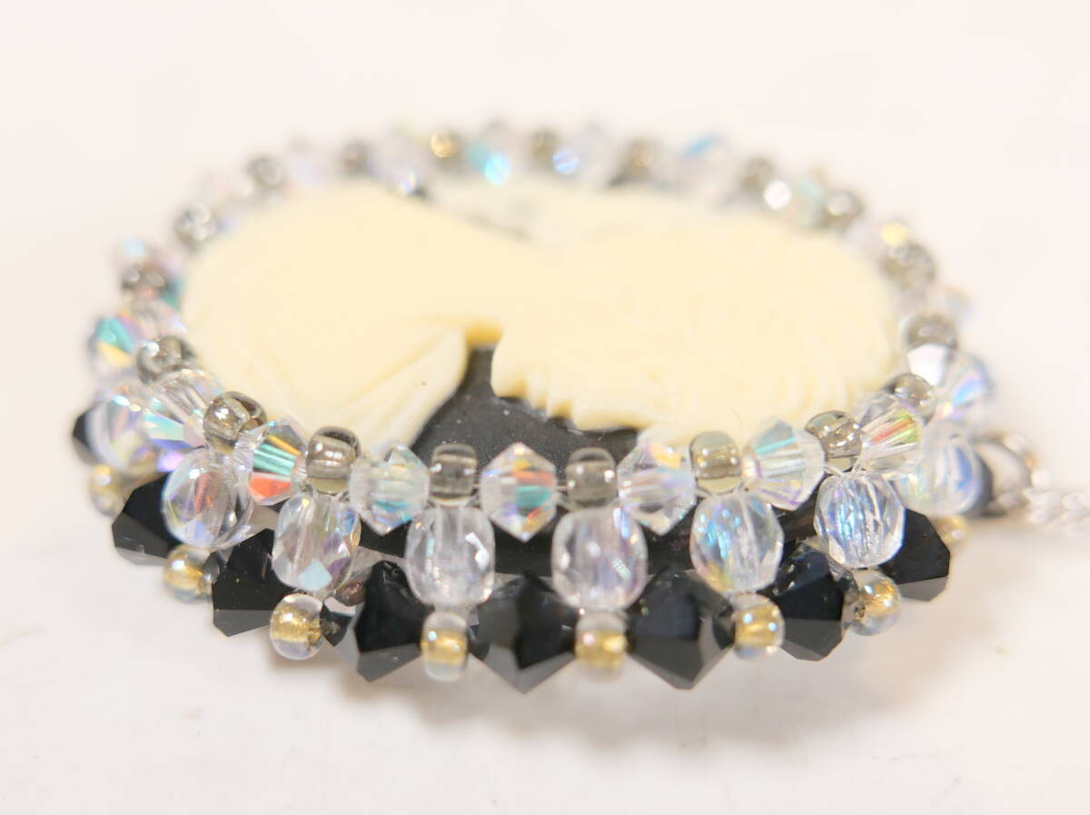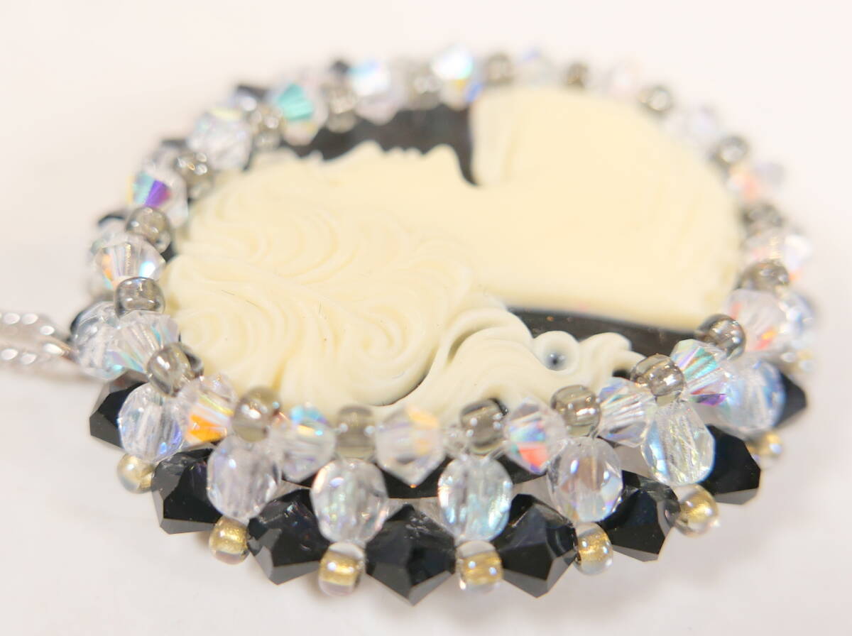 | 中古★レディース ファッション カメオモチーフ ビーズ デザイン ペンダント ネックレス 3.1×3.5cm 首回り50cm | ||