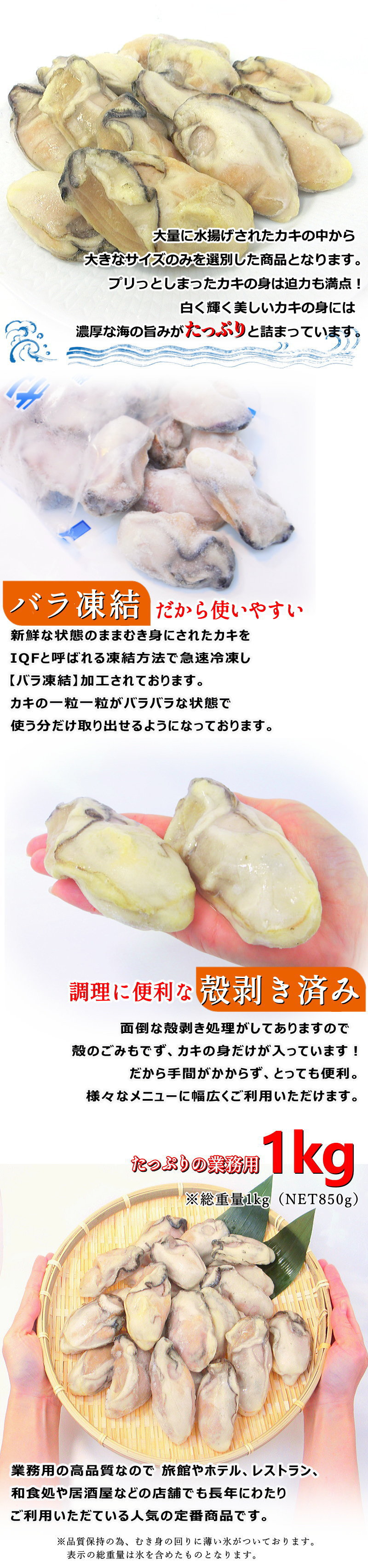 殻を剥いて、身だけを使いやすいバラ凍結にしました。