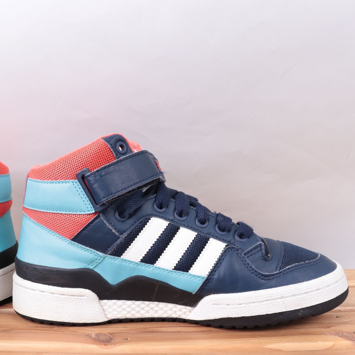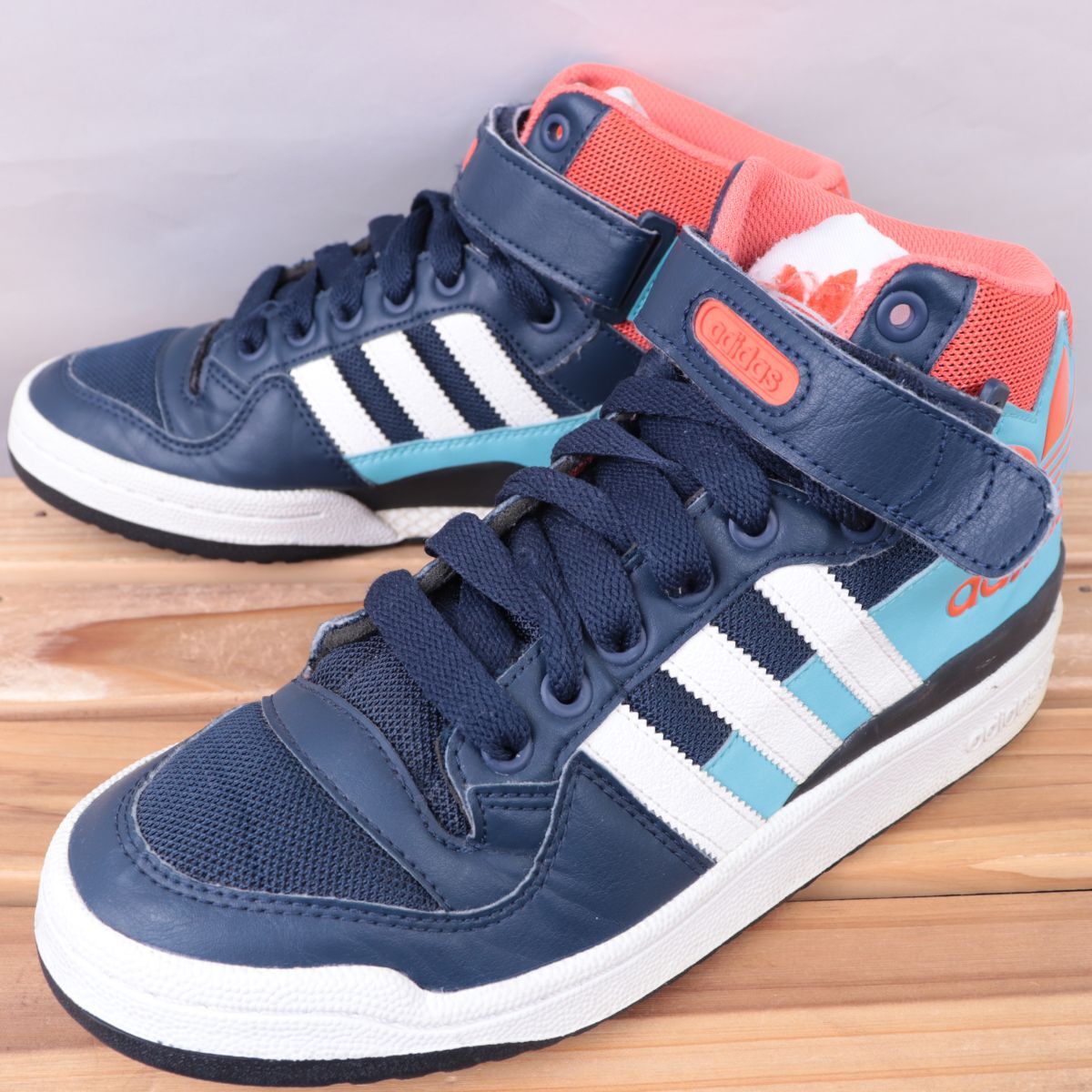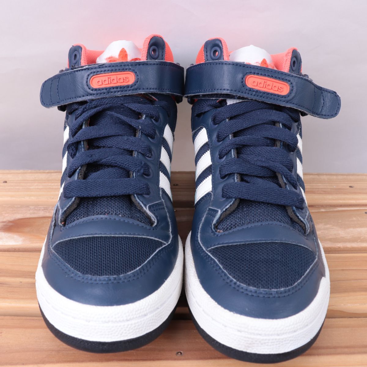 z1810 アディダス フォーラム ミッド US8 1/2 26.5cm/ダークネイビー 紺 オレンジ 水色 adidas FORUM MID RS メンズ スニーカー 中古