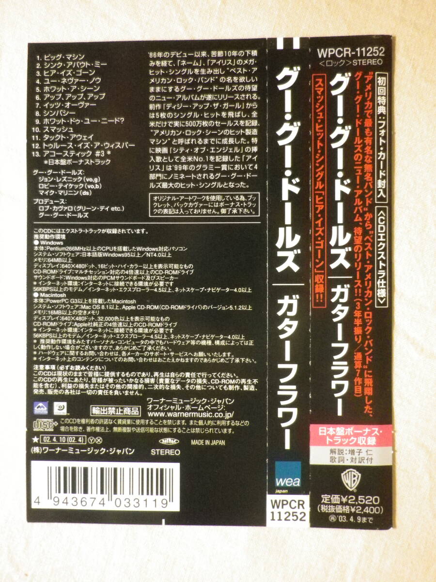 The Goo Goo Dolls/Gutterflower(2002)2002年発売 WPCR-11252| 出价者 | 信用 | 价格 | 时间 |