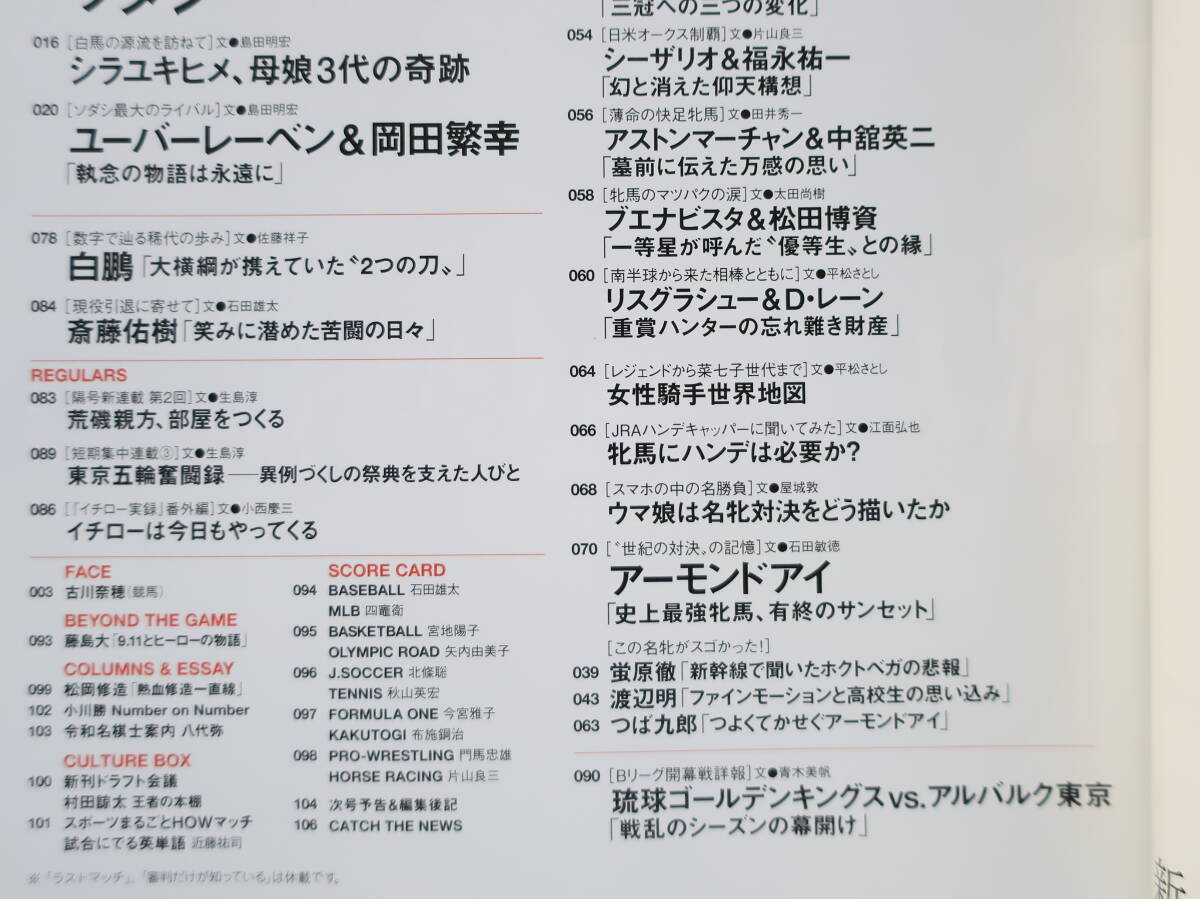 | Sports Graphic Number スポーツグラフィックナンバー 2021年 1037/JRA保存版/特集:秋競馬 運命の名牝/ソダシ/アーモンドアイ/福永祐一武豊 | ||||