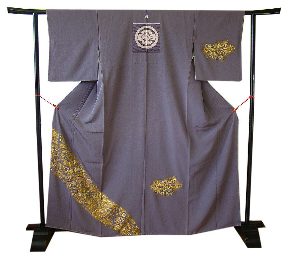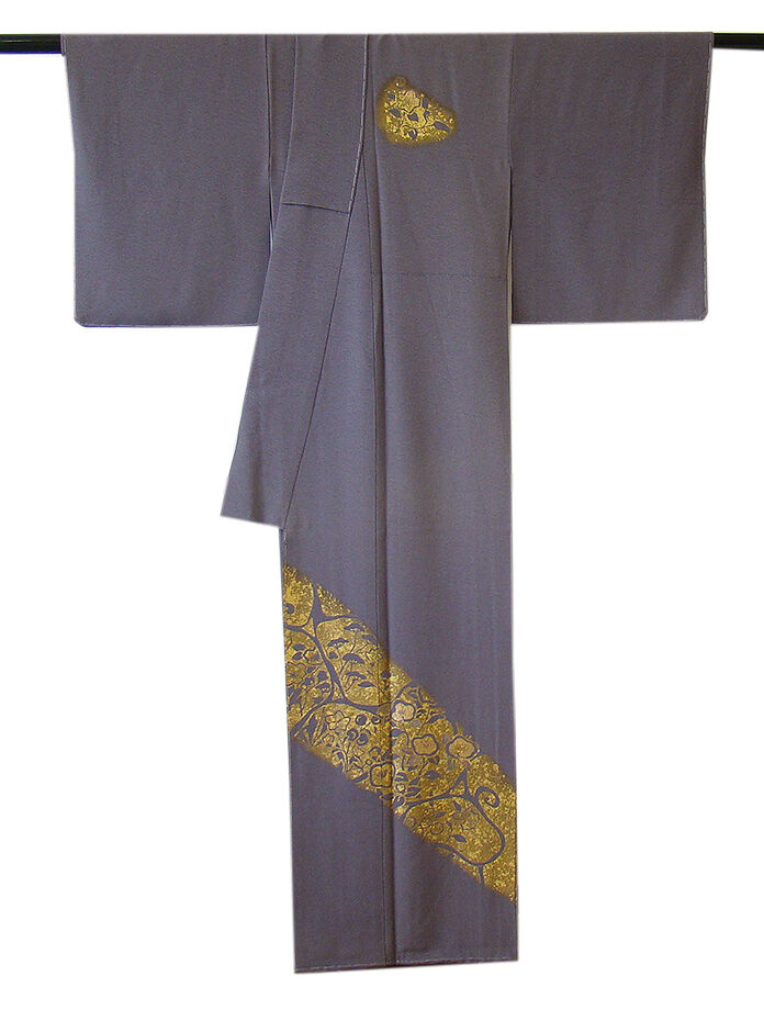 | 商品説明 | こちらのお品は「袷」ですので10月から5月までお召頂ければと思います。 とてもしなやかで柔らかな手触りの着心地良い重めの極上ちりめん地の生地、 鳩羽色地に花草柄の豪華な金彩加工染、 八掛は渋い藤煤竹色(正絹)、背に「丸に横木瓜」の紋1ヶ、幅広い年代の方にお召頂けます。 |