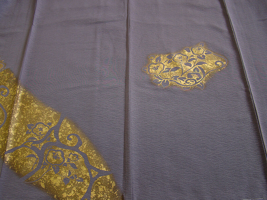 | ちょっと一言 | ぽってりとした極上ちりめん地に豪華な金彩加工染の洒落感溢れる素敵な訪問着です。 帯や小物次第で様々な表情をお愉しみ頂けることでしょう。 |