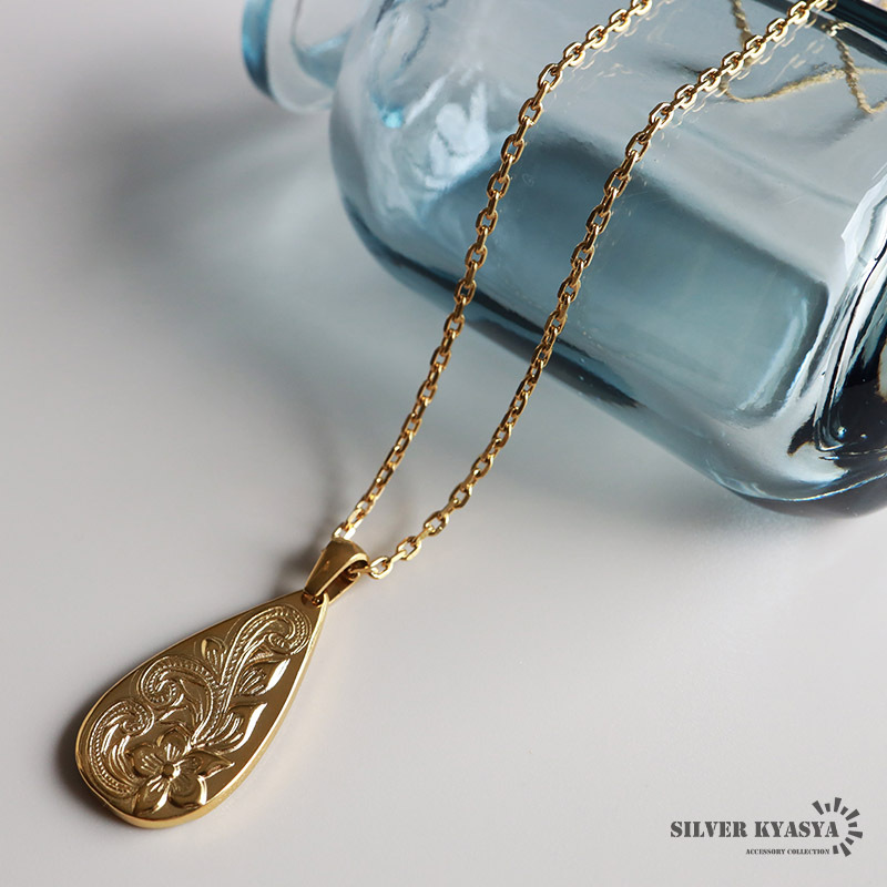 ※こちらの商品は【サイズ:50cm】です。別タイプは別商品ページにてお買い求めください。| 商品概要 | ■ITEM DETAIL ティアドロップ型のプレートにスクロールとプルメリアを描いたハワイアンネックレス。4面カットを施したあずきチェーンが光を反射させ、華やかに輝きます。 ■ステンレス素材を使用 金属部分は頑丈なことで知られるステンレス素材を採用。耐久性はもちろん耐水性も高く水場での着用も可能。金属アレルギーも出にくいとされている金属です。 |