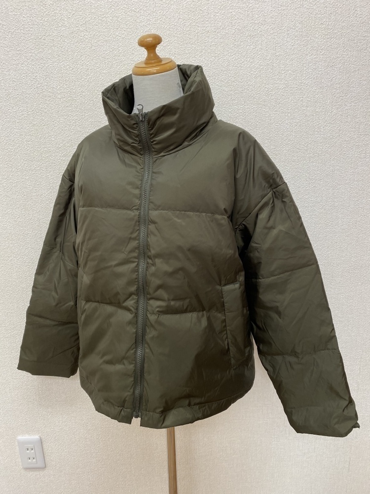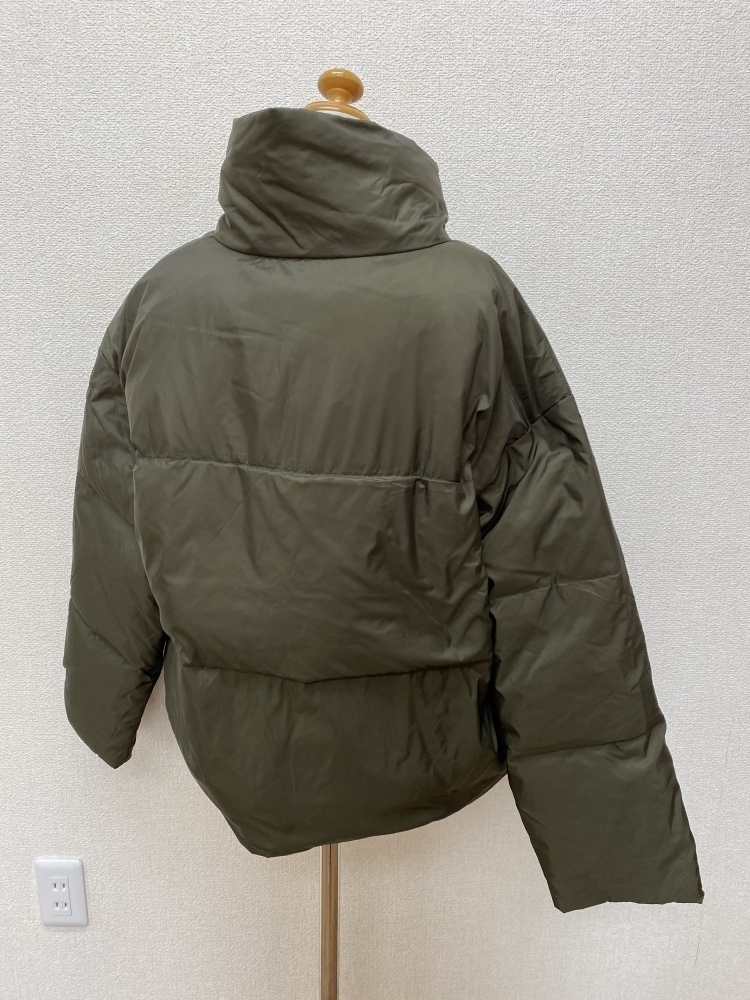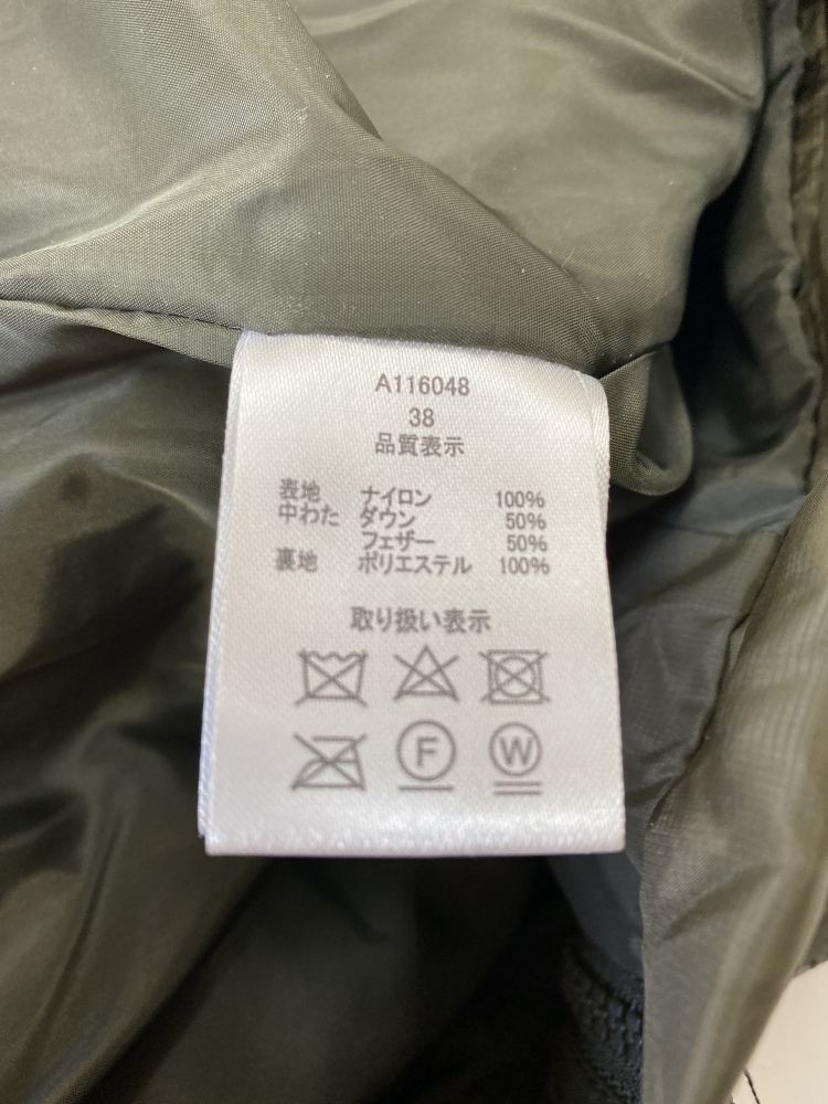 | 管理番号:99^127183 オリーブグリーンのダウンジャケット 前ジップ 表示サイズ:38 実寸(参考)