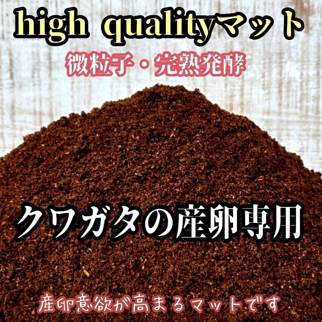 こだわりのカブトムシ、クワガタ用品を30年以上製造してきました。 たくさんのリピーター様には大変感謝申し上げます。 また、たくさんの効果報告を頂きありがとうございます。 high quality完熟3次発酵クワガタ産卵専用マットの出品になります(写真を3枚添付してありますのでご覧下さいませ) 数量:5リットル 保存にも便利なチャック付き袋 追加は何リットルでもご対応致します。