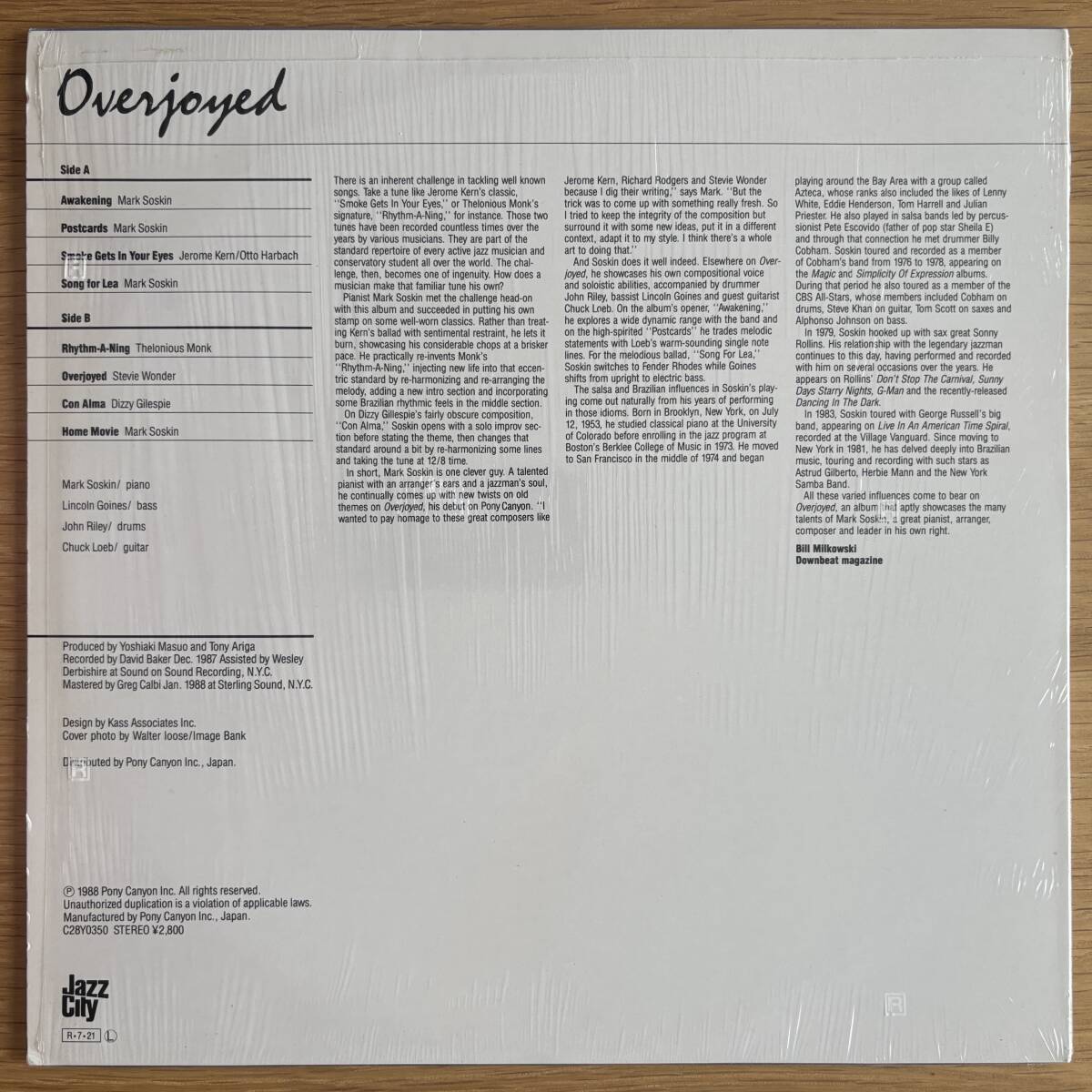 国内企画 シュリンク付き MARK SOSKIN Overjoyed 国内オリジナル盤 LP EX/NM IN SHRINK 1988 JAZZ CITY C28Y0350 | |||