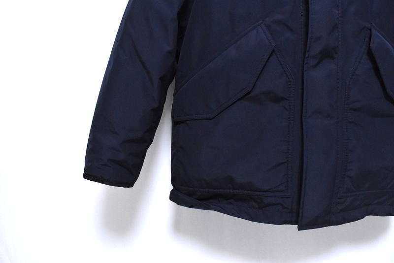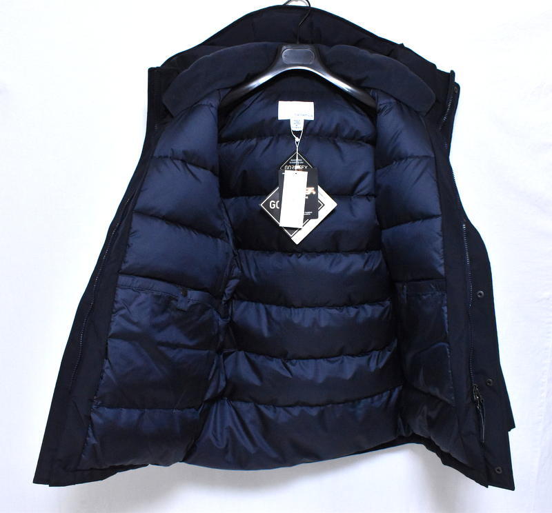 新品未使用。㈱ナナミカ取り扱いの国内正規品。 ミドル丈のフーデッドダウンコート。 表地には防水透湿素材の2L Polyester GORE-TEX Fabricsを使用。 裏地にはポリエステルリップストップを使用。 フライトジャケットをベースにしたパッチ&フラップポケット。 前立て裏と腰ポケットのフラップ裏にはファスナー付きのセキュリティーポケット。 内側にはマフラーや手袋の収納に便利な大型ポケット。 袖口には冷気の侵入を防ぐリブ仕様のインナーカフス。 中わたは、体が発する遠赤外線を輻射して保温効果を高める高機能な光電子(R)ダウンを使用。 【色】・・・ネイビー。フラッシュの関係で実物と画像では多少の色の濃薄が見られます。ご了承の上ご入札お願い致します。 【素材】・・・表地:ポリエステル(コーティング等樹脂加工生地使用)100% 裏地:ポリエステル100% 袖口リブ:ポリエステル97%、ポリウレタン3% 袖口:ナイロン100% 中わた:ダウン72%、レーヨン20%、その他の羽毛8% 内衿:ポリエステル100%。 【サイズ】XS・・・身幅約58cm、着丈約77cm、袖丈(脇下から計測)約51cm。 【状態】・・・新品未使用。保管時の軽度のしわが見られます。 ご了承の上、入札お願いいたします。 他にも多数出品致しておりますので、宜しければご覧になって下さい。安値での出品ですのでこの機会に是非どうぞ! |