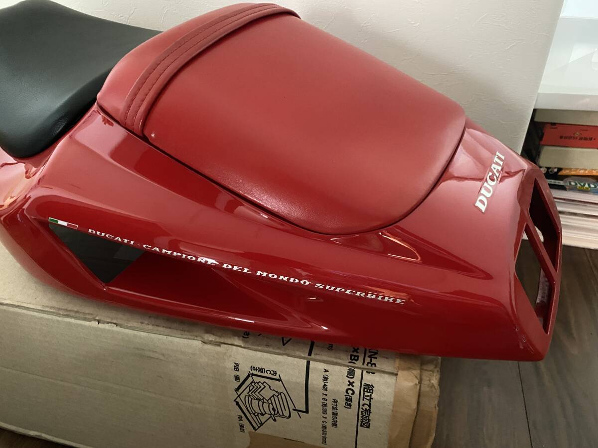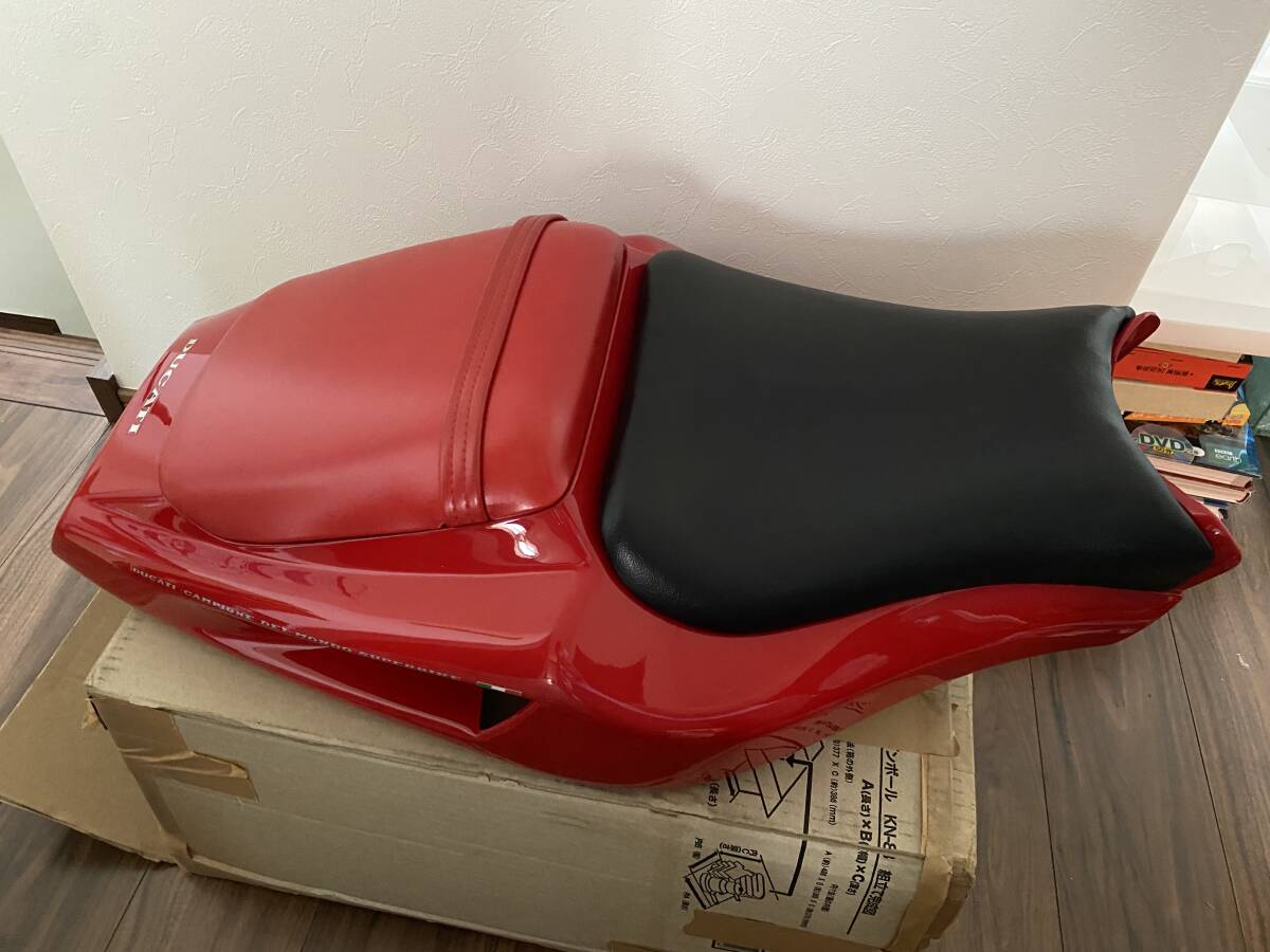 Ducati916 Bipost(2人乗り)用のシートカウル、シート付きです。シートカウル、タンデムシートはフルオリジナル純正品です。シートは別で入手しましたが、オリジナルとはシート表皮が異なり張り替えられものです。シートカウルテールライト付近左側に少し傷がありますが、全体的に小傷も少なく大変綺麗だと思います。ダクト部分の金網メッシュは外されています。シート固定についてナットが不足、仮固定です。ピッチのあうナットをご用意下さい。| 出价者 | 信用 | 价格 | 时间 |