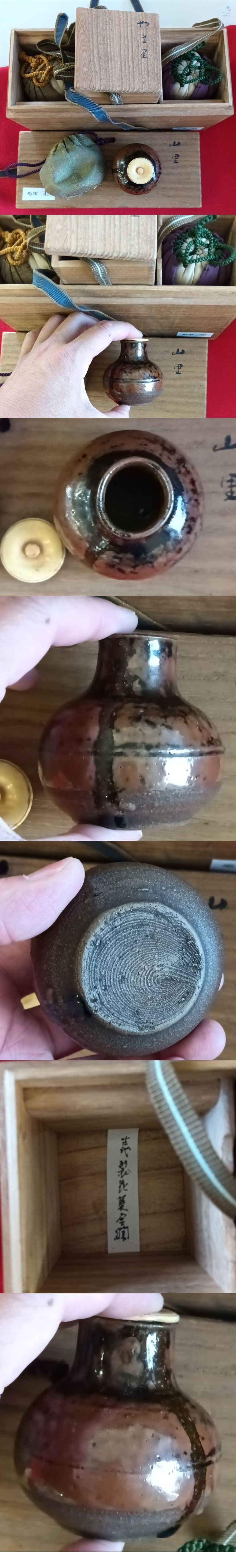 江戸時代 古瀬戸 茶入 山里 在銘 唐物 茶器 茶道具 共箱 2重箱 蓋 仕覆添 古代 金欄