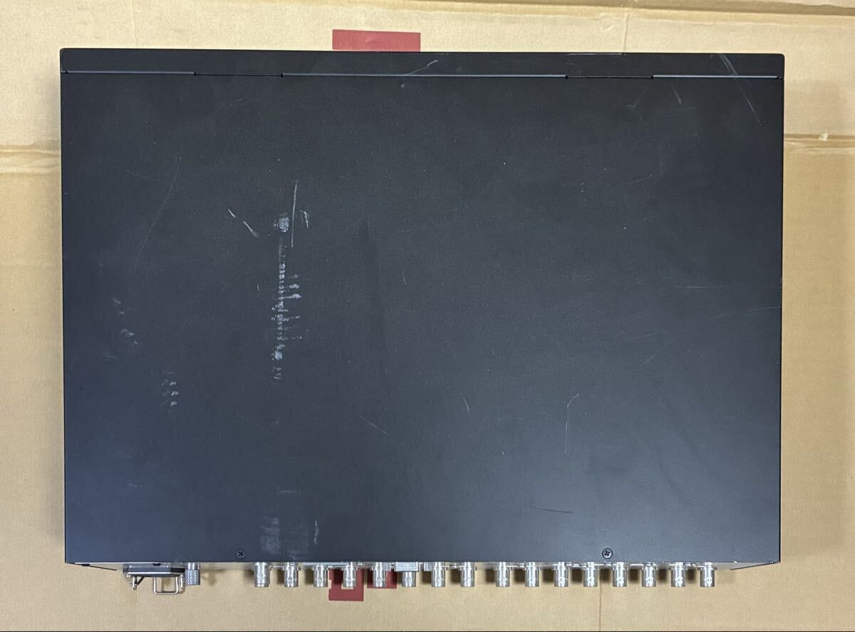 実機出品の詳細記載():HDMI入4/出4、SDI入4/出4、DP出2等のチャンネル表記あり(個体情報)。