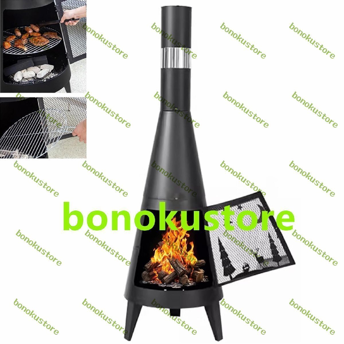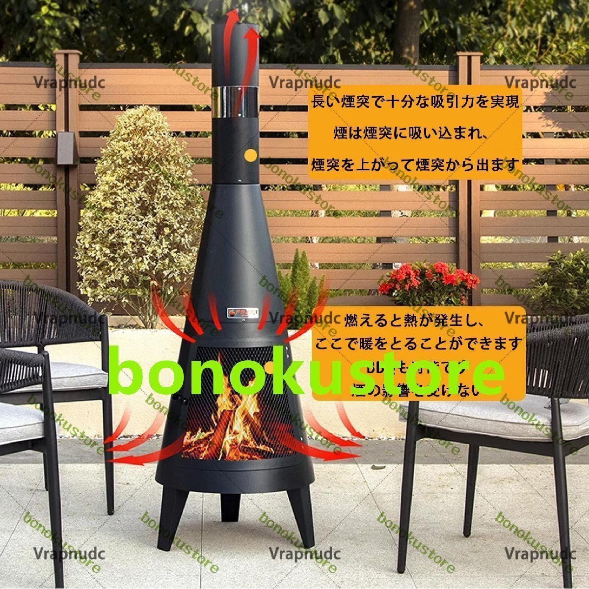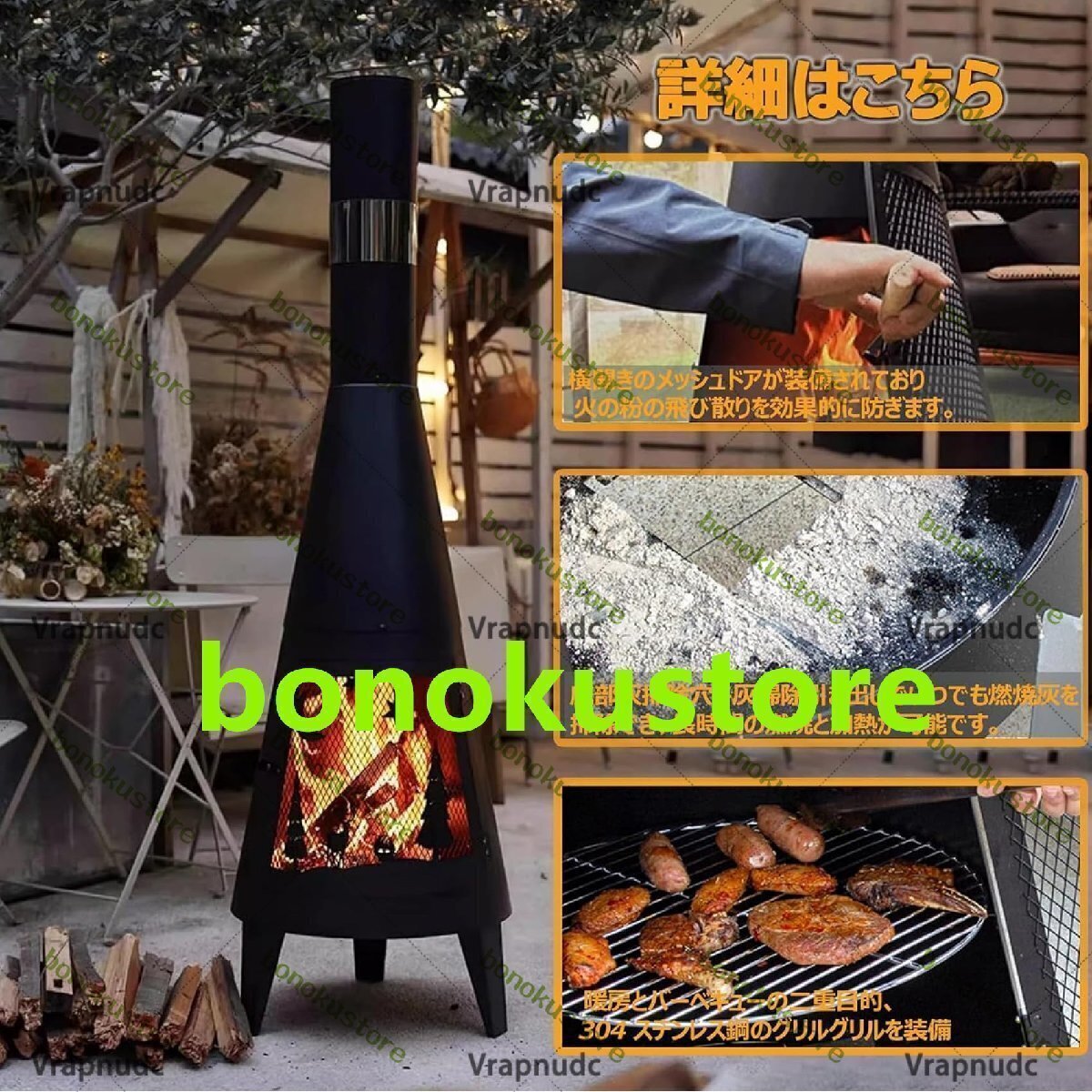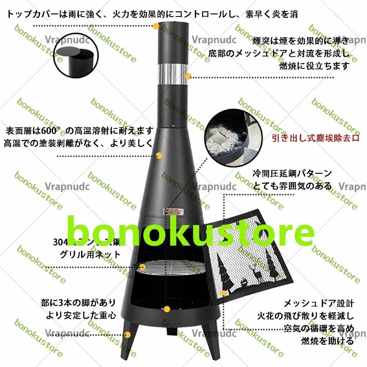 Vrapnudc焚火台 大型 キャンプ用 家庭用薪ストーブ バーベキューネット付き アウトドア 薪暖炉 ロケットストーブ 二次燃焼 クッキングストーブ 600℃の高温に耐える 強力火力 キャンプ/ビーチ/釣り/登山/遠足/暖房用
