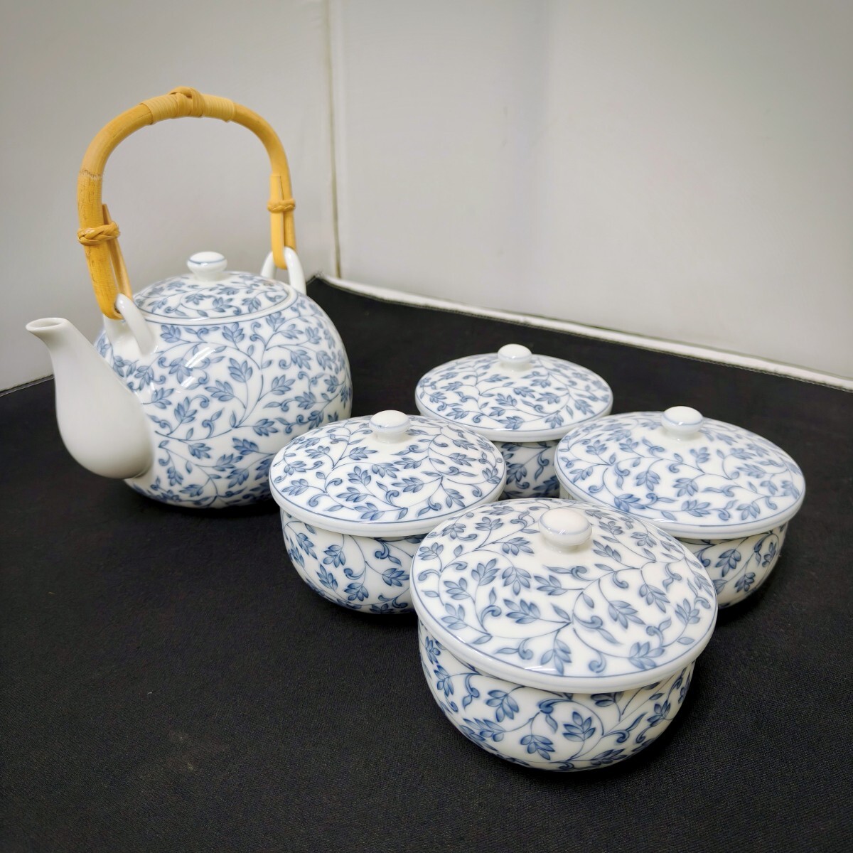 橘吉 たち吉 急須 湯呑み たち吉 蓋付湯呑4客 唐草模様 茶器 和食器 茶器揃 陶器 (10257G