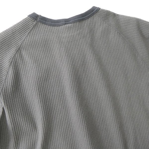 軽さのあるワッフル素材を使用し、ゆとりのあるシルエットで大変着心地の良い一枚。 首回りのリブ使い、袖先・裾は配色を切り替えてデザインのポイントにしております。 袖はラグランなので、肩の可動域が広く動きやすい作りです。 細やかな凹凸感で表現したワッフル素材は、上品な面持ちでカジュアルスタイルからキレイめ合わせまで対応できます。 |