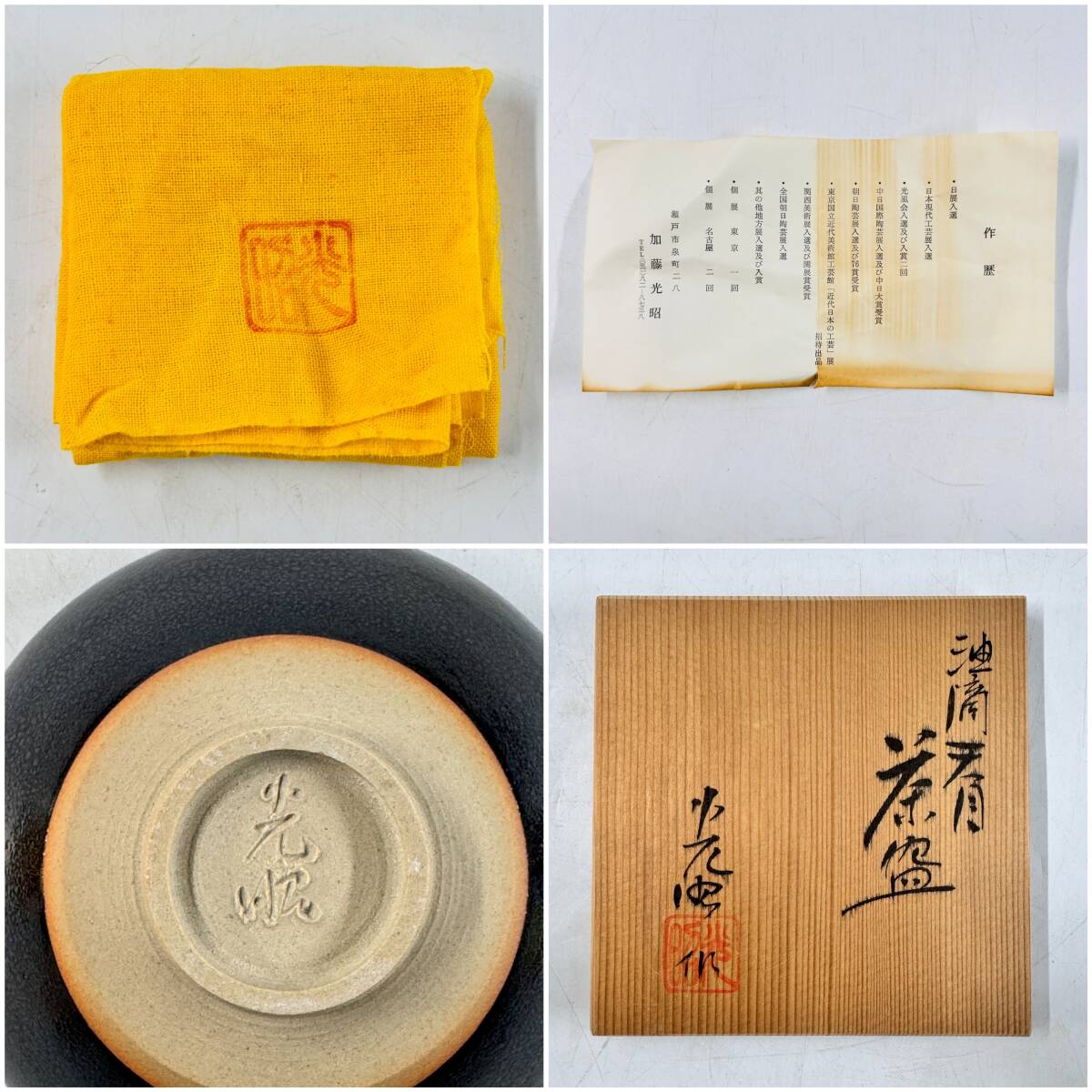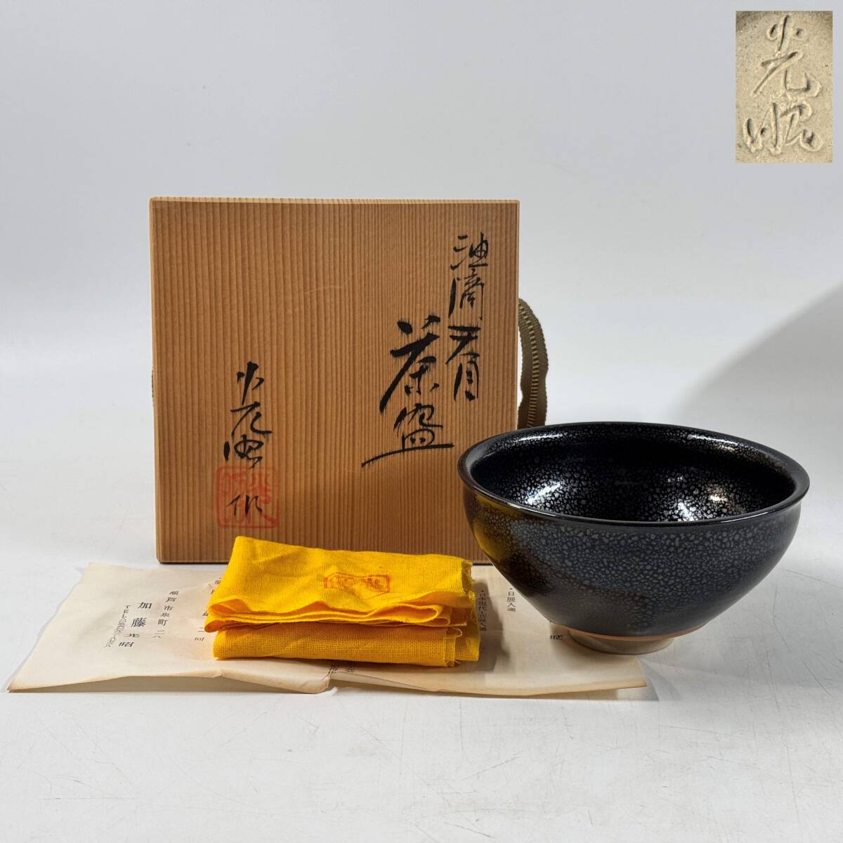 未使用 瀬戸焼 加藤光昭作 銘印在 油滴天目 抹茶碗 茶道具 茶器 共箱 共布 栞 経年保管品 現状品の出品です。