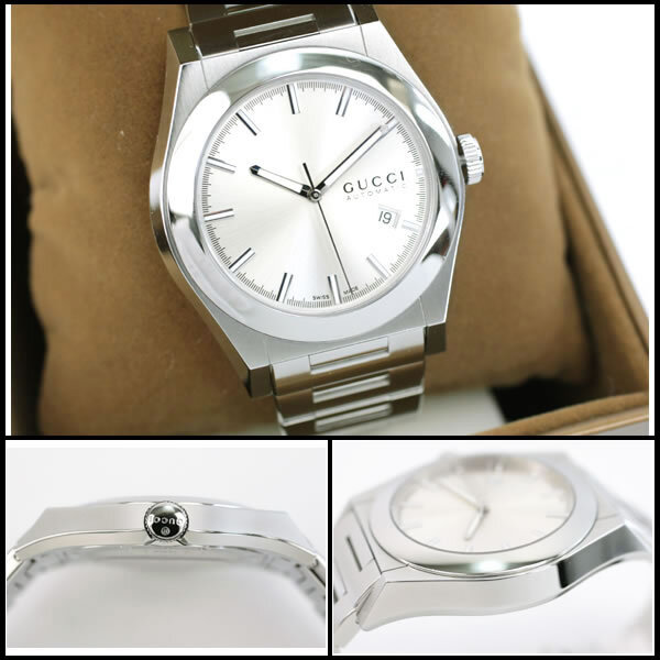 | 商品名 | グッチ ★希少 美品 パンテオン デイト YA115202 メンズ シルバーダイヤル バックスケルトン オートマ |