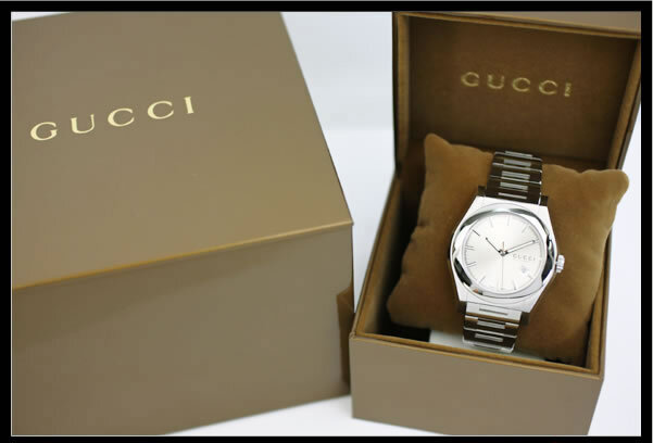 | その他商品説明 | イタリアのファッションブランドとして世界的な人気を誇るグッチから、シルバーカラーで統一されたボディ×ダイヤルがシックな印象の「パンテオン」をご紹介します。当商品はグッチを代表する人気「パンテオン」のメンズモデルであり、その名のとおりパンテオン神殿をイメージした上品なデザインが特徴的です。また、存在感のある44mm径ケースには人気のバックスケルトンが採用されており、優美なムーブメントの動きを楽しむことが可能です。どんなファッションとも相性が良く、スーツからカジュアルまで幅広くマッチします。この機会に是非ご検討下さい。 状態:本体・ブレスレットに若干の微細な小傷があり、本体側面部分に多少の小傷がありますが、いずれも目立つものではありません。ガラスのカケ・傷等はありません。ランクA+につき自信を持ってお勧めします。 |