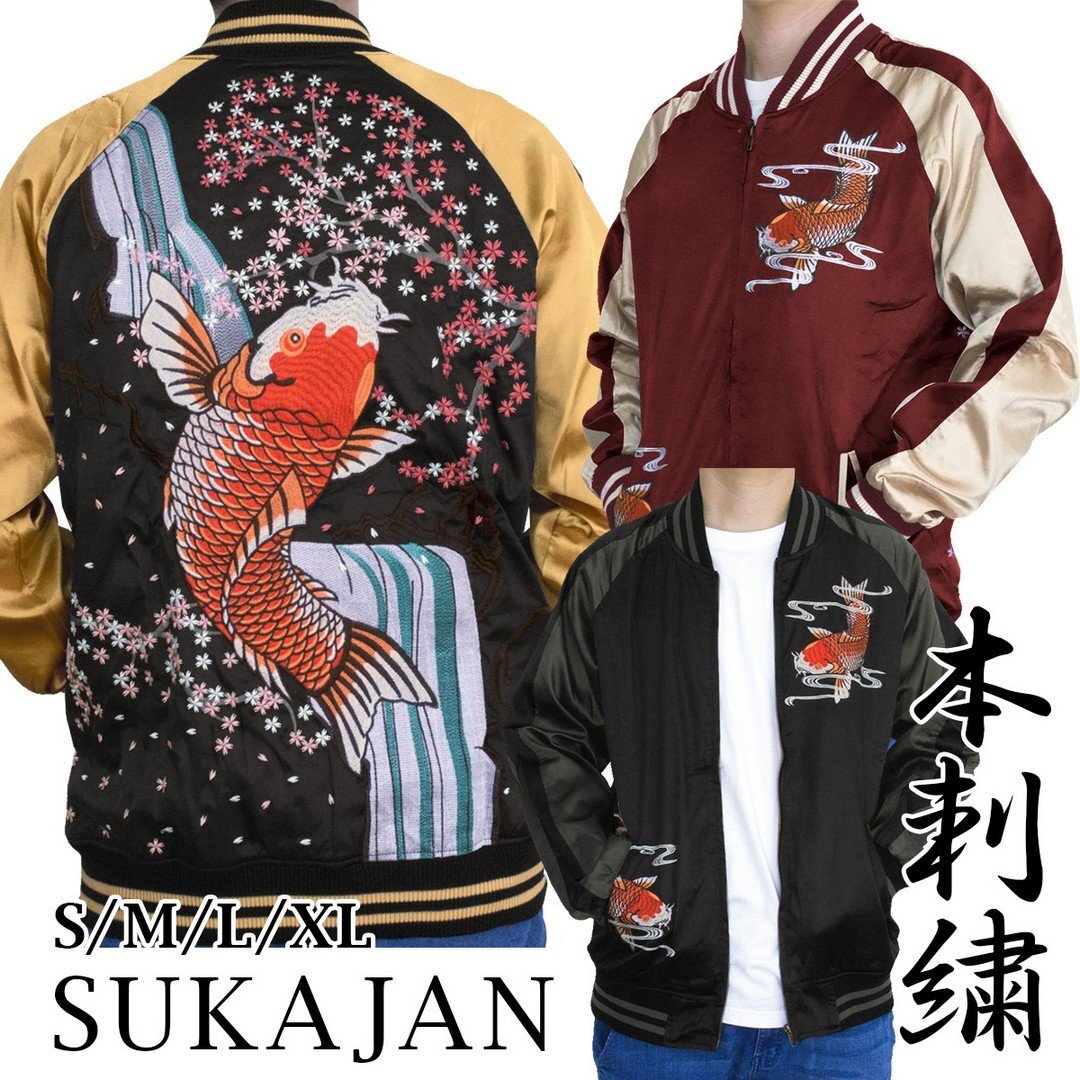 【C00245-2】送料無料 スカジャン ブラック サイズ:M 鯉 コイ|