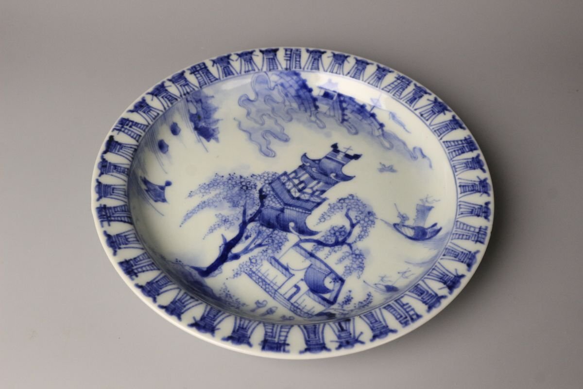 [.U]25.07 25070218 A* * * 商品詳細 * * * ここでしか出逢うことのできない唯一の美をご紹介させて頂きます。 古染付 楼閣風景図字縁皿 ― 青の世界に広がる幻想の景 ― 淡くも力強い染付の筆致で描かれた楼閣と風景。 広がる空、流れる雲、水辺の舟が 静かに時が流れる情景のように、見る者をふっと別世界へと誘います。 見込みには風情ある構図が広がり、縁には整然とした字文様があしらわれ、 器全体に心地よい緊張感と調和が宿っています。 やわらかな白磁と深い藍の対比が、上品な佇まいを際立たせる逸品。 この機会に是非ご堪能下さい。 ■商品内容/ 皿、箱 ■サイズ/横21.5㎝×高2.5㎝ 箱:横24㎝×高6.5㎝×奥行24㎝ ■状態/ スレ、傷、汚れ、直し、箱にスレ、傷、蓋の浮きがございます。 ※写真にてご確認、ご了承の上ご入札下さい。