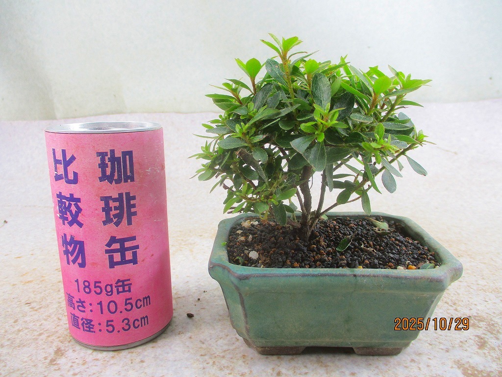 [緑の市場] ミニ盆栽 皐月 早乙女(102818草均釉正方鉢)全高:15㎝【小型送料】*同梱包対応「まとめて取引」厳守*60サイズ送料明記 同梱包ご希望は「まとめて取引」でお手続きして下さい。 *同梱包は[緑の市場]のタイトルでの出品商品に限ります。類似画像で他IDの出品にご注意下さい。* 単品(セット品は1組)発送ご希望の際は「まとめて取引」の手続きをしないでください。入札前に必ず下記の「発送方法」に記載の送料を確認してください。 の取引においてメッセージは特に必要ありません。挨拶などを省略できる取引システムですし取引ナビの通知で進行状況が判るので都度の連絡(送金や受け取りのメッセージ)は不要です。配送日時指定や連絡事項のみお知らせください。双方合理的に進めましょう。また、お急ぎの方は入札をご遠慮ください。業務時間内での対応になります(土日祝休業)。 寸法は鉢を含む全高です。(樹高ではありません。) 一緒に撮影しているスケールまたは比較物をご参照ください。 飲料缶は高さ約10㎝、直径約5㎝です。 500mlペットボトルは高さ約21㎝です。 ■画像の様子から経時変化しますので撮影日(画像記載)からの変化はご了承下さい。 *花物・実物は特にご注意下さい。 画像(撮影時)では開花品でも、お届け時は花終わりを想定して下さい。 ◎落札が無い場合は、自動再出品が継続されます。 撮影から2か月経過した場合、どんどん開始価格が下がりますが、商品の劣化も進みますので、 撮影日からの期間経過品はある程度の劣化を想定で入札にご参加下さい。 商品により90日間程度(物によりそれ以上)同じ画像を使用しますので、必ず撮影日をご確認下さい。 |