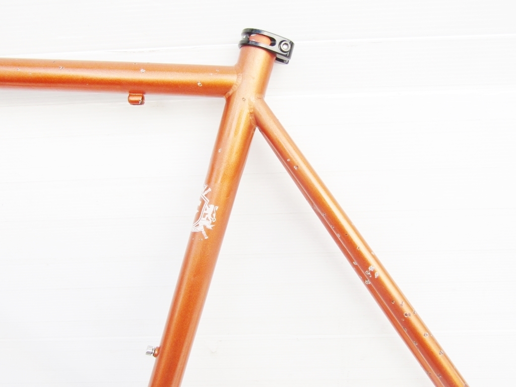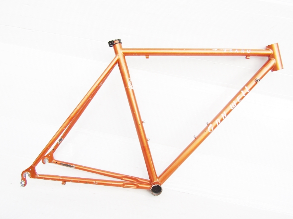| gan well ガンウェル 細身のホリゾンタル形状 クロモリ ロードバイク フレーム 510mm ロッカク GANWELL 6KAKU カッパーゴールド 京都 岩井商会 | |