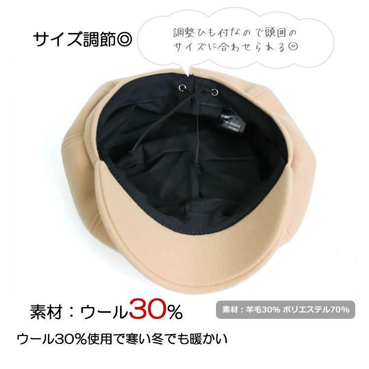 ハンチング キャスケットウール30% 帽子 キャップ レディース 男女兼用 ユニセックス 形状記憶 形崩れしない 無地 シンプル カジュアル オシャレ サイズ調整 送料無料