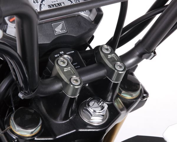 | 〇仕様:ガンメタリック ○アルミ削り出し ○アルマイト仕上げ ○2ヶ1SET ○取付ピッチ:32.5mm ※ノーマルハンドルホルダー専用、キタコ製トップブリッジ使用不可。 汎用性の高いハンドル周りをドレスアップするハンドルアッパーホルダーです。ハンドル径、ボルトサイズ、取付ピッチが合えば、様々な車種に装着可能です。 |