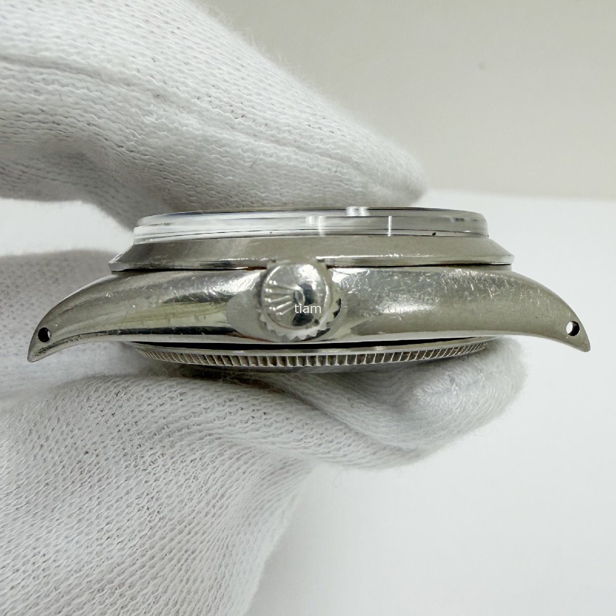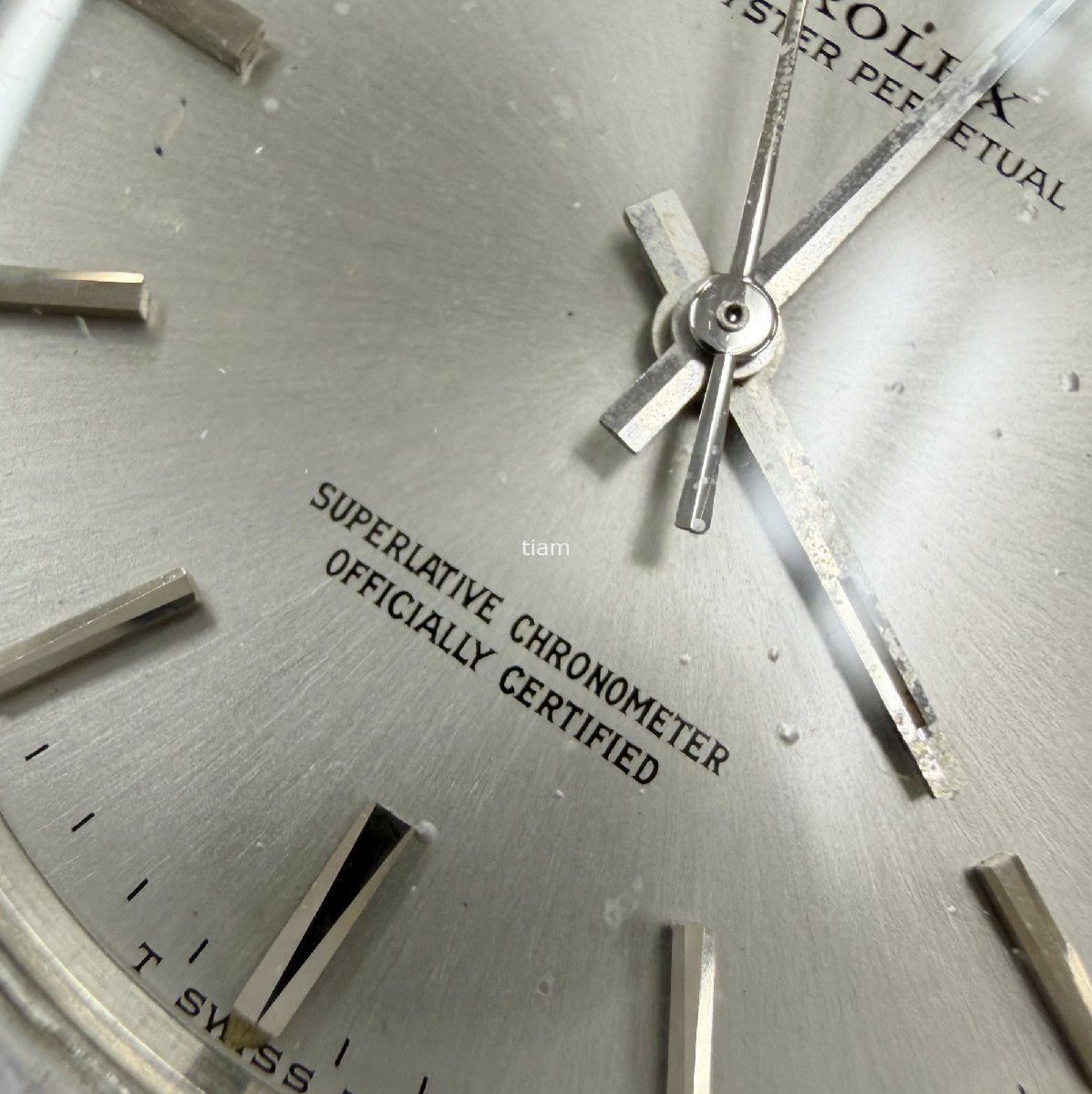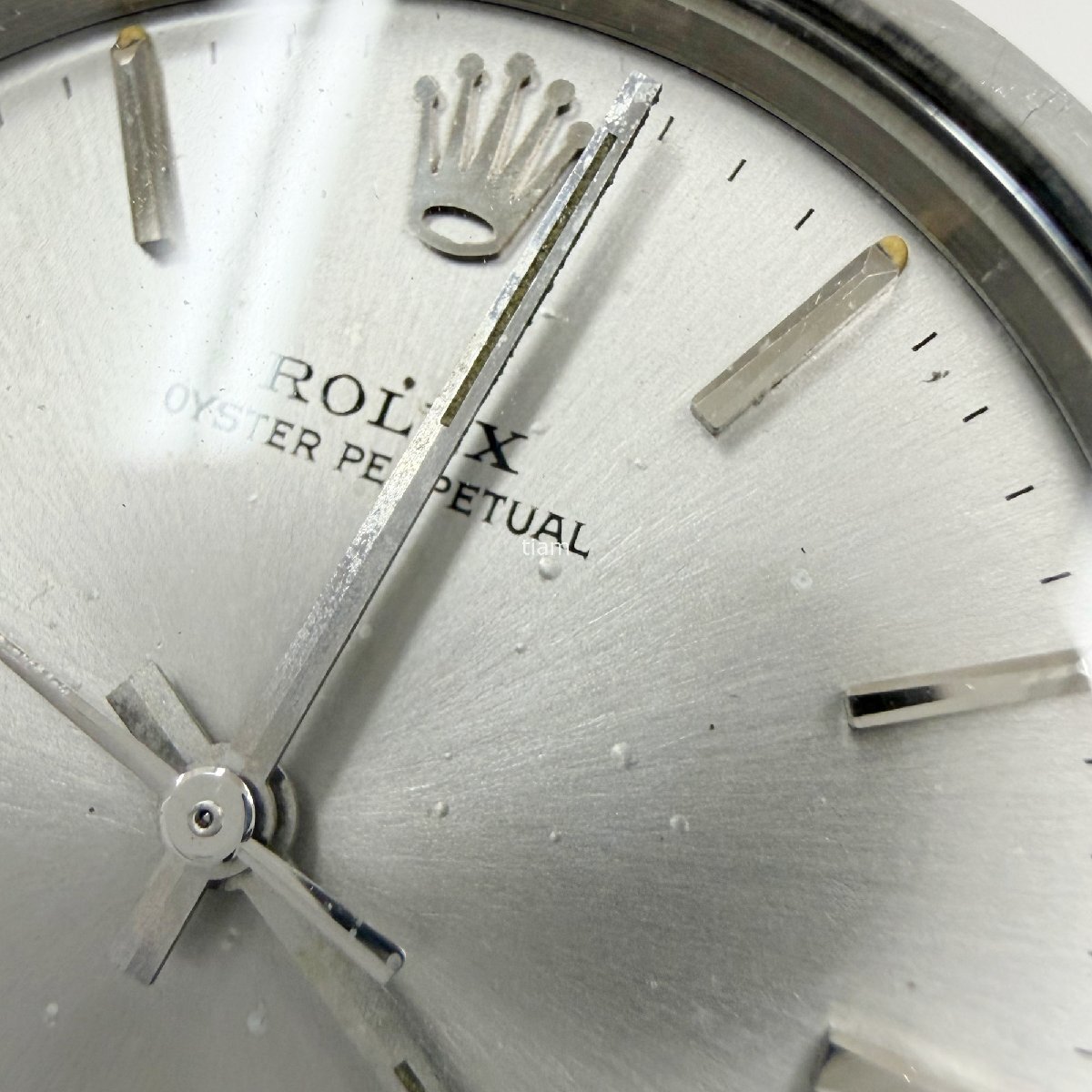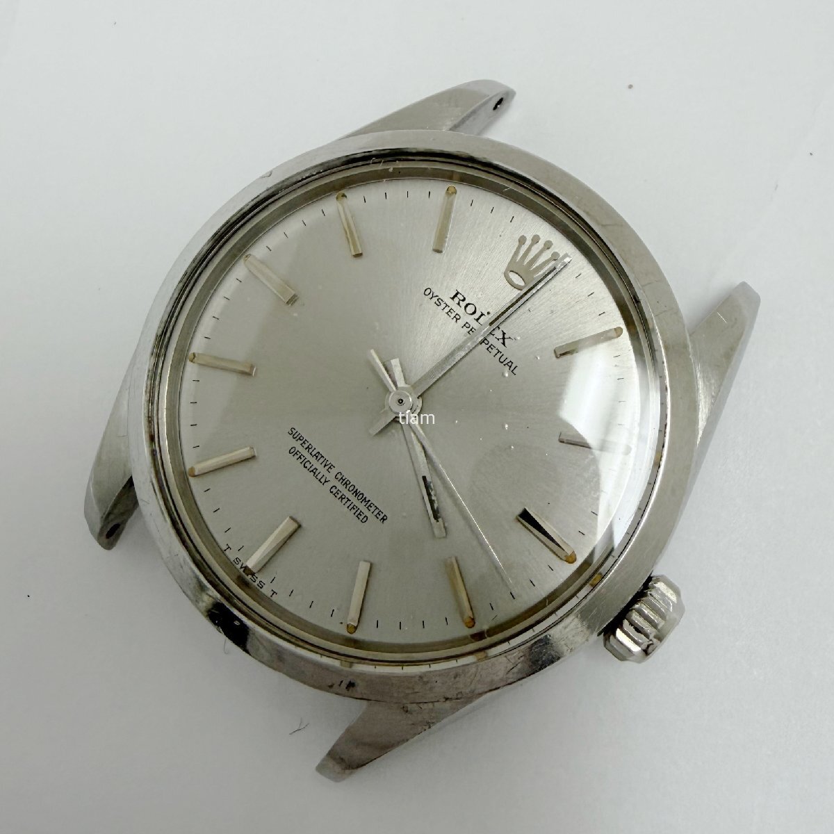 | ガラス: 弊社にて交換済みです。(アフターマーケット製) ダイヤル/針: ぷつぷつとしており、針に劣化がございます。 ケース/ベゼル: 小傷が多くございます。ベゼルに打痕がございます。 ブレス: その他: | ||