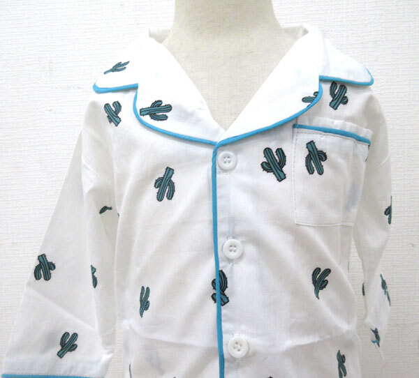 送料300円(税込)■be147■(250819)キッズ 長袖パジャマ サボテン/ホワイト 80(712120) 3点【シンオク】