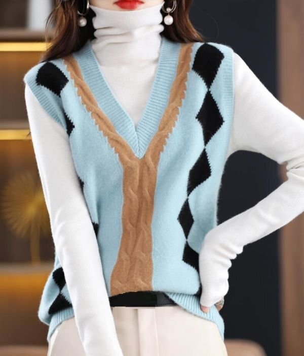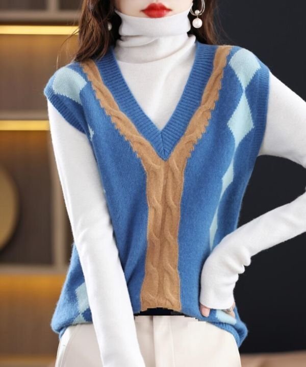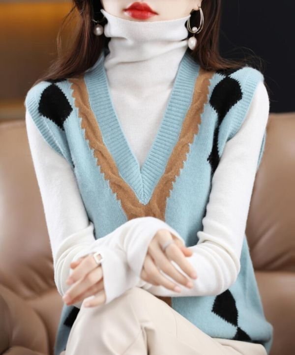 ニット ベスト レディース チョッキ トップス Vネック ノースリーブ ゆったり ベスト セーター オフィス★水色 [浏览原始页面]