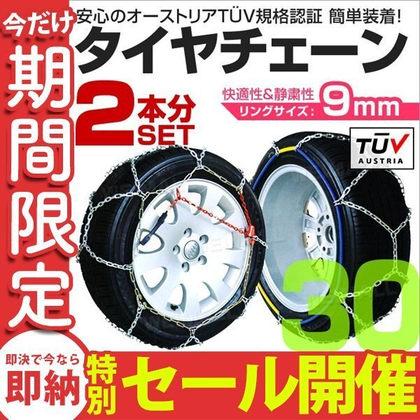 | 商品コード:09MMKNO30 こちらのサイズナンバーは No.30 です ■商品内容 9mmリング タイヤチェーン(1セットは2輪分) オリジナル収納袋 ( 袋に簡易取付説明など記載 ) ■適合サイズ