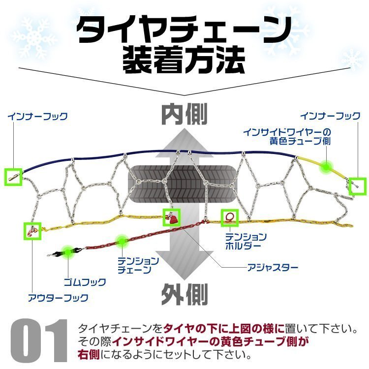 | 金属製 タイヤチェーン 亀甲タイプ 簡単装着 ジャッキアップ不要 |